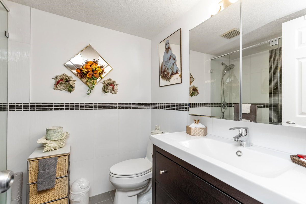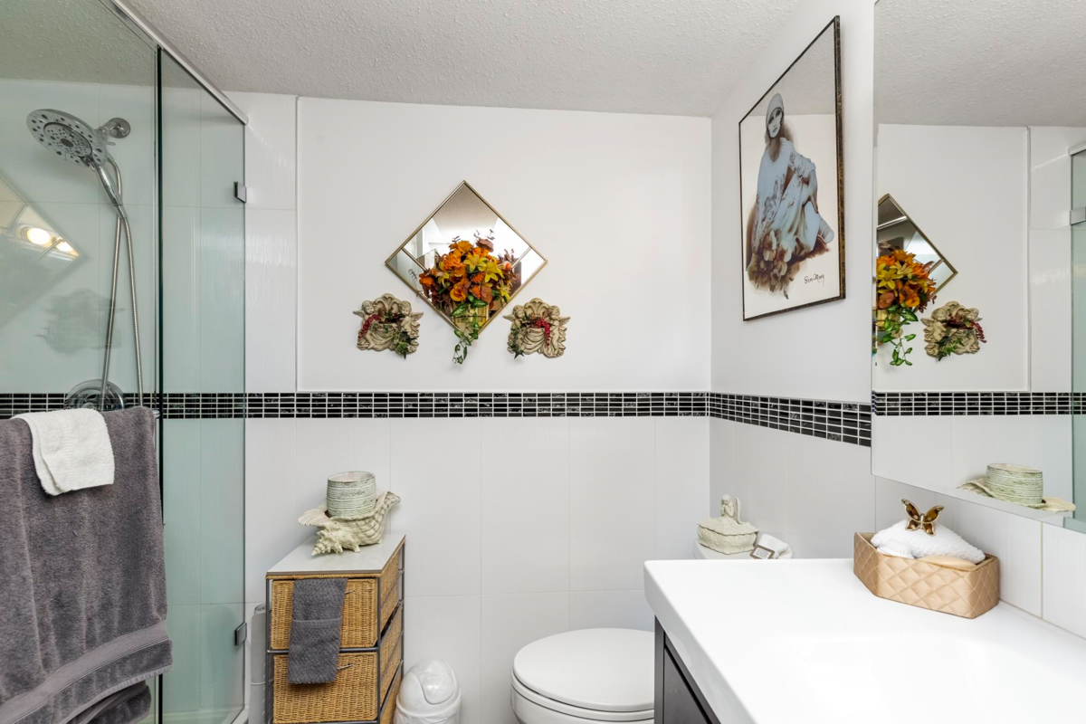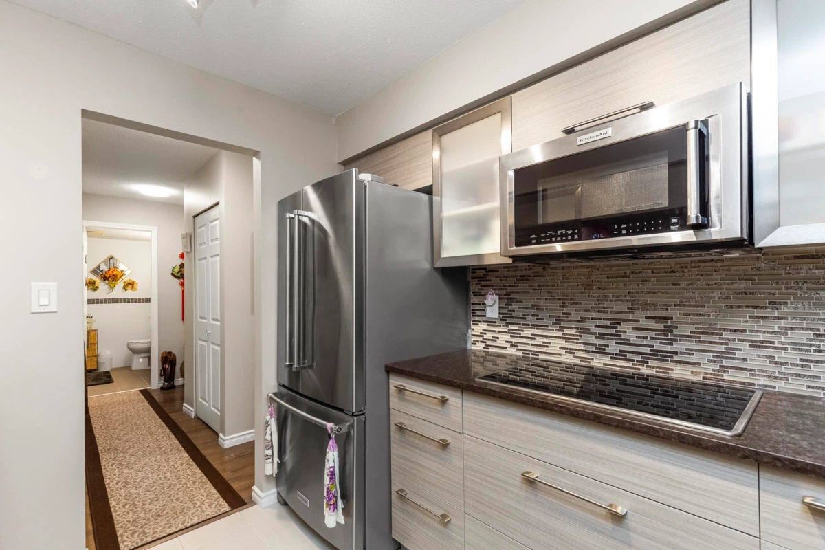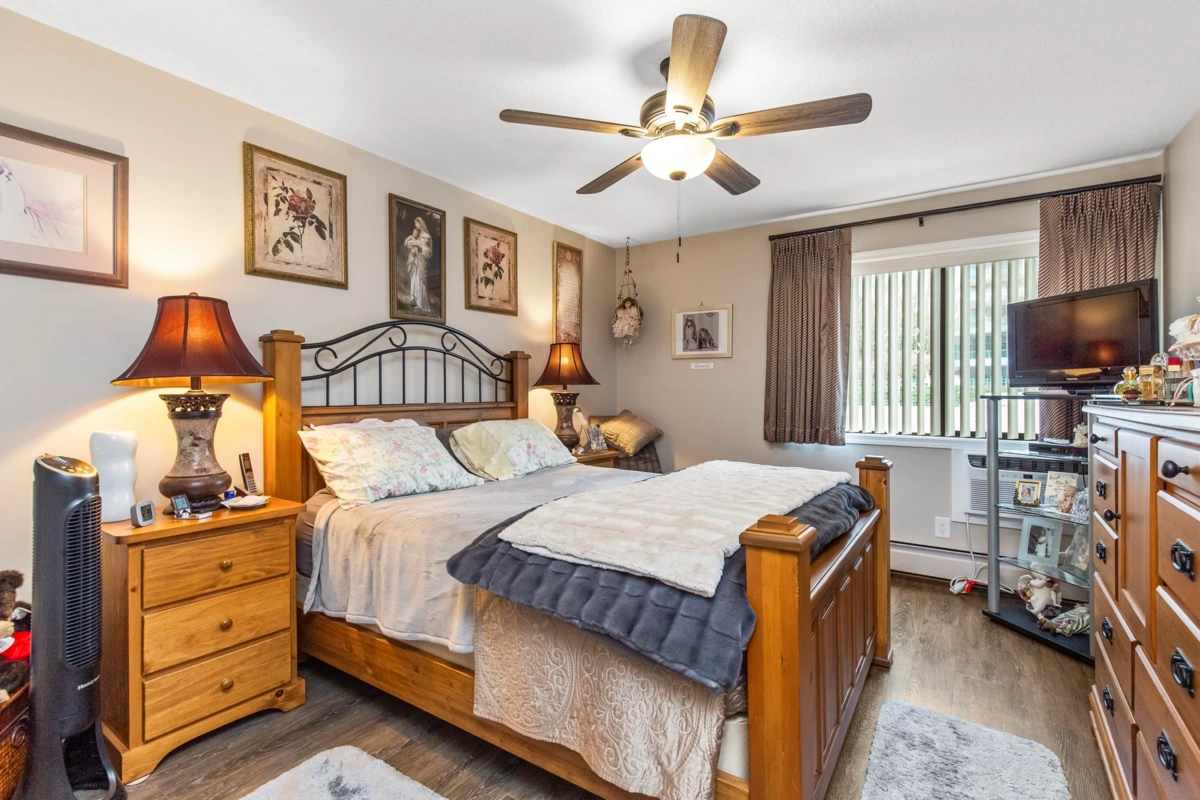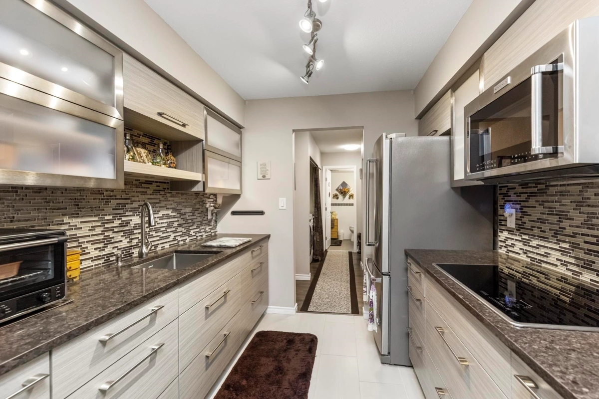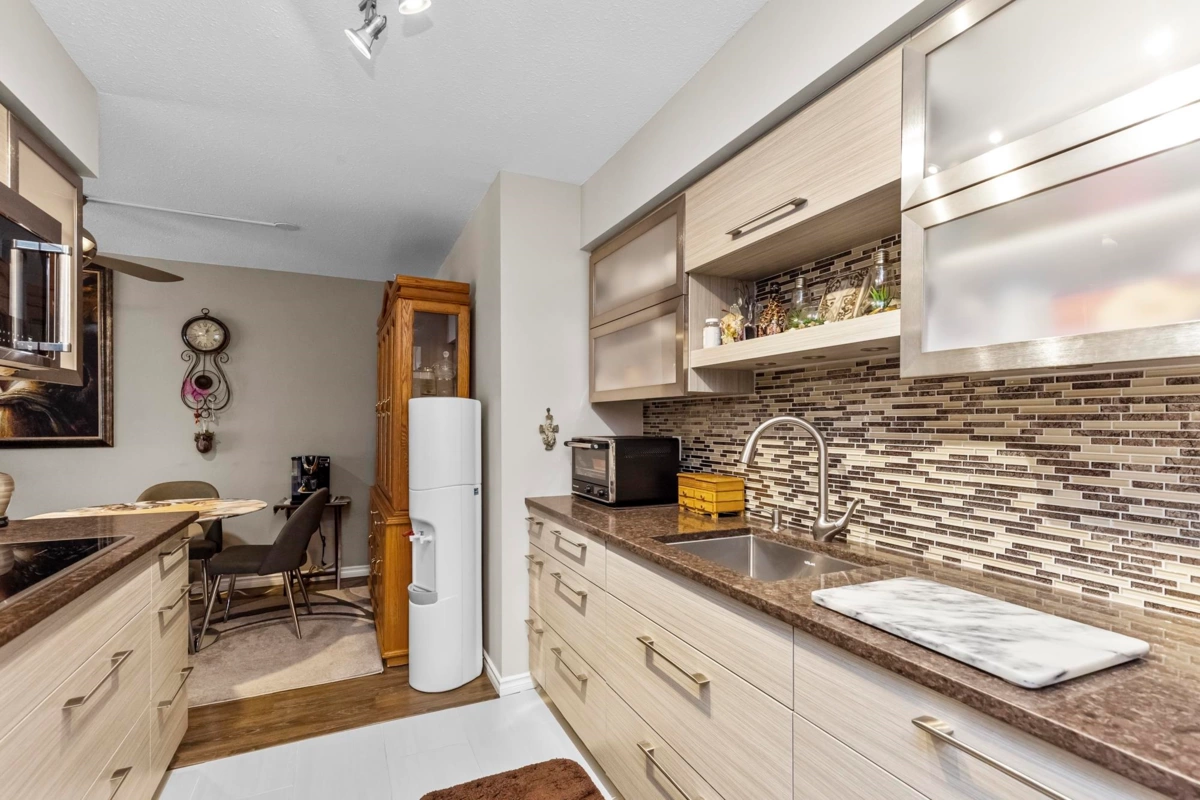 MOTIVATED SELLER! Meticulous 2 bed unit in Evergreen Village! Convenient ground level suite, with state of the art kitchen Reno! Beautiful quartz countertops, modern induction stovetop, combo microwave and oven, sleek European cabinetry and hidden dishwasher. Boasting a renovated bathroom with walk in shower. Generously sized master bedroom, and 2nd bedroom with new built in air conditioners. Walk in pantry space, Fresh paint, In-suite laundry, and new vinyl plank flooring. Building offers many amenities for the social senior, including pool, hot tub, guest suite, library, lounge, RV parking. Heat and Hot water included in strata fee. No pets allowed.