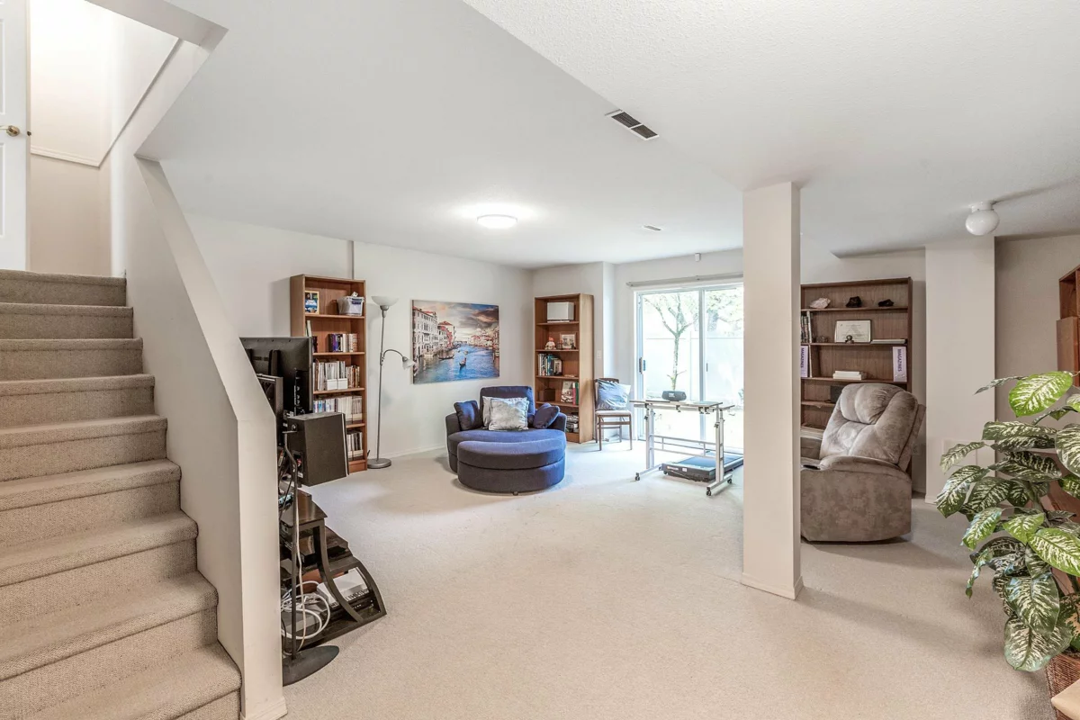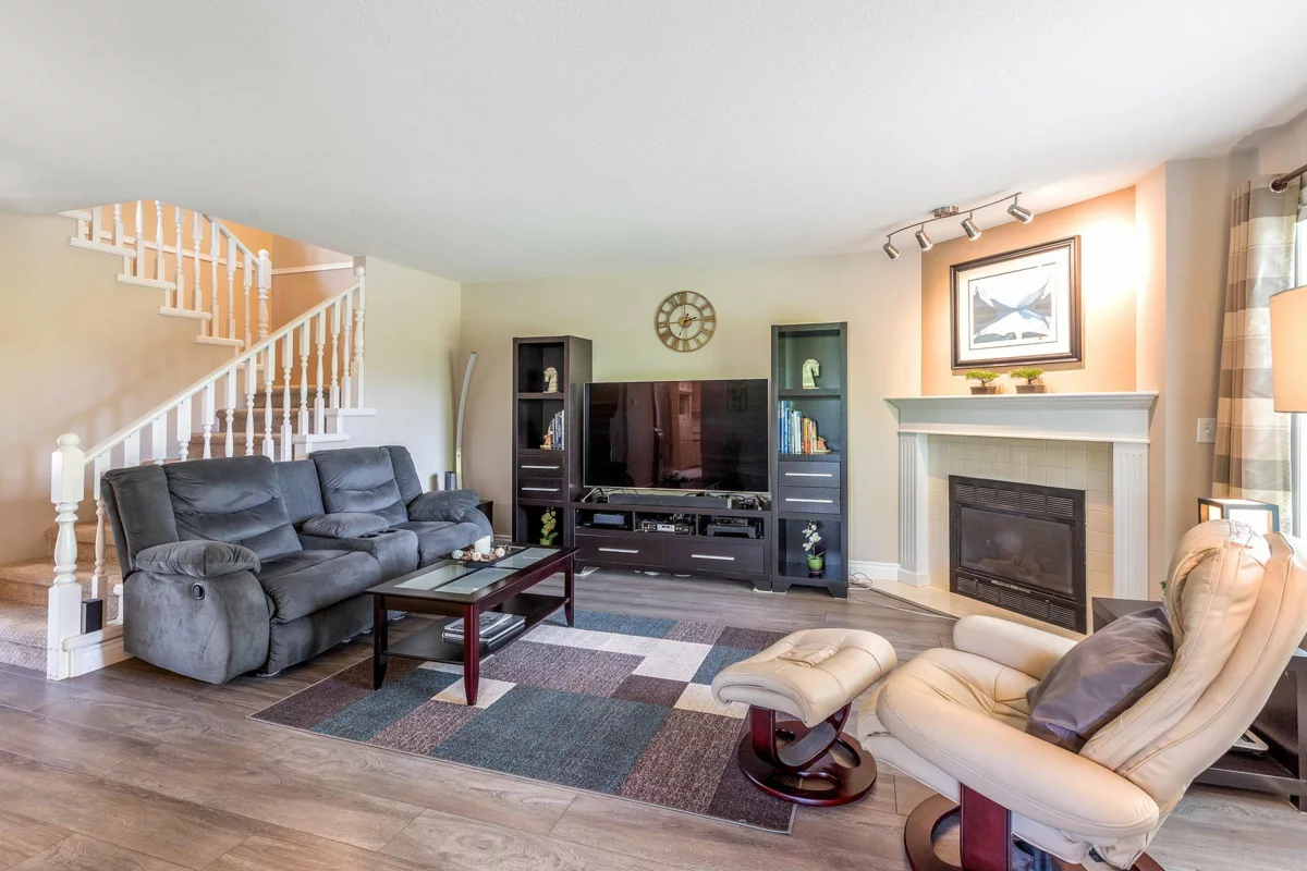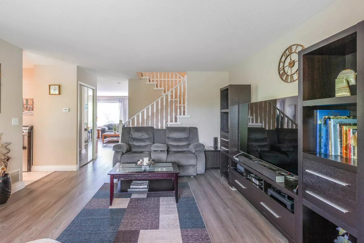 Welcome to Somerset Lane! This stunning corner unit townhouse features 4 bedrooms and 3 bathrooms, offering the spaciousness of a detached house. Large windows provide bright daylight, and the gas fireplace add a cozy touch. The kitchen is large and inviting. New flooring and paint. The basement includes a large room that could be a bedroom or a rec room and is plumbed for a 4th bathroom. Enjoy private outdoor space on the deck or large wraparound yard. Large two car side by side garage easily fits 2 cars. Located in a family-oriented neighborhood with great schools, It’s just minutes walk from a recreation center, community center, library, and shopping. A future skytrain station will be within walking distance, and highways 1 and 17 are a short drive away.