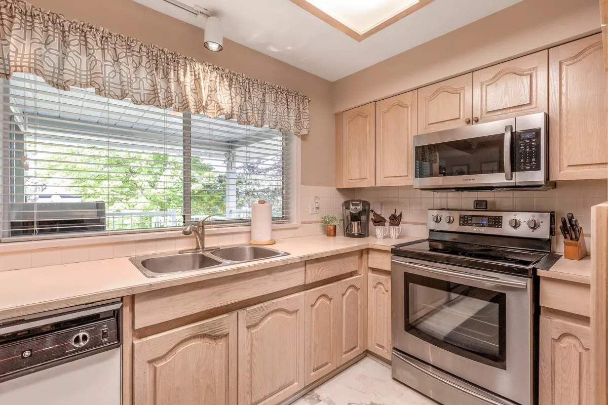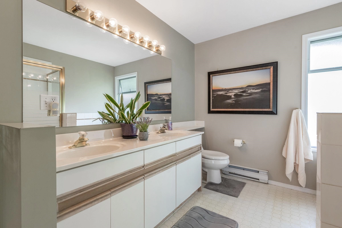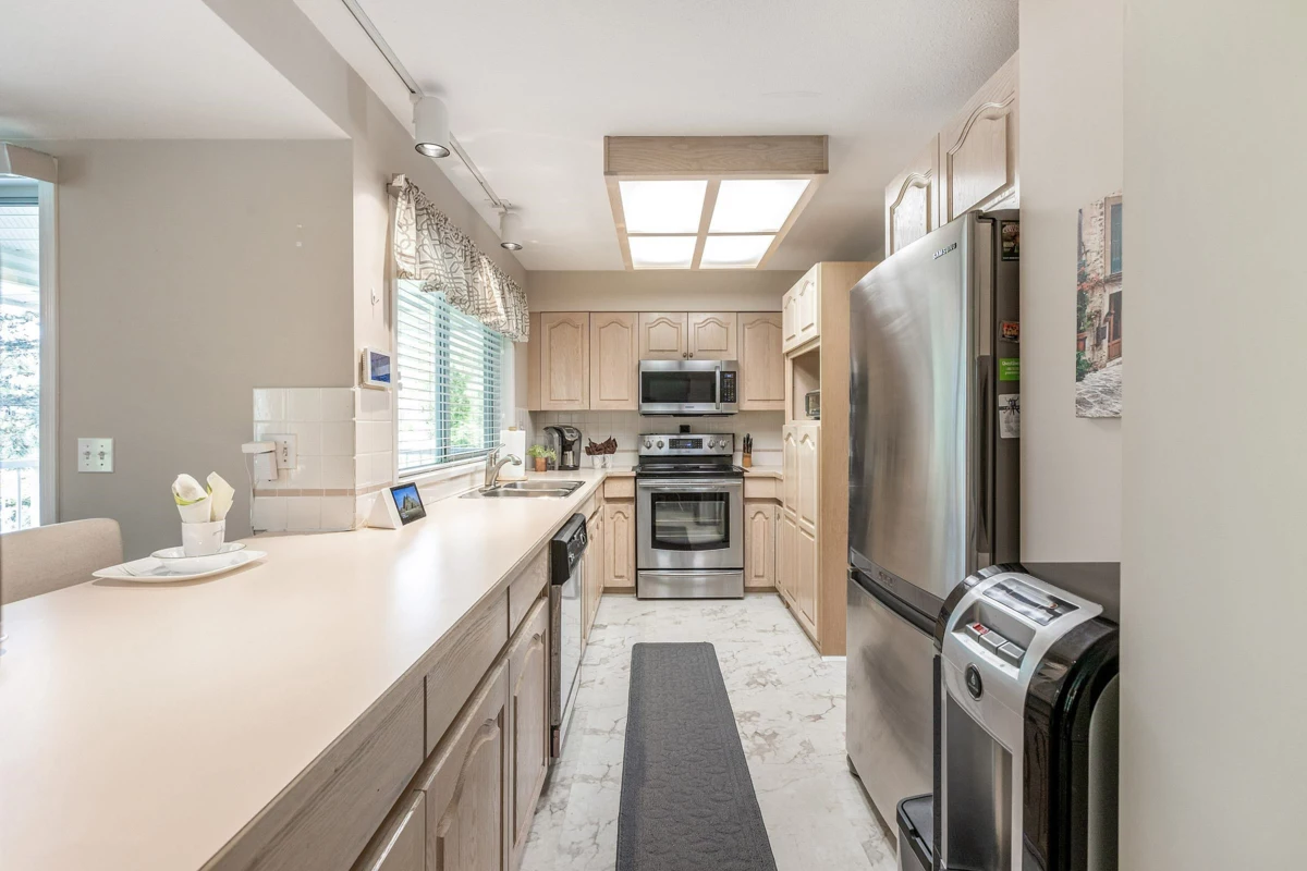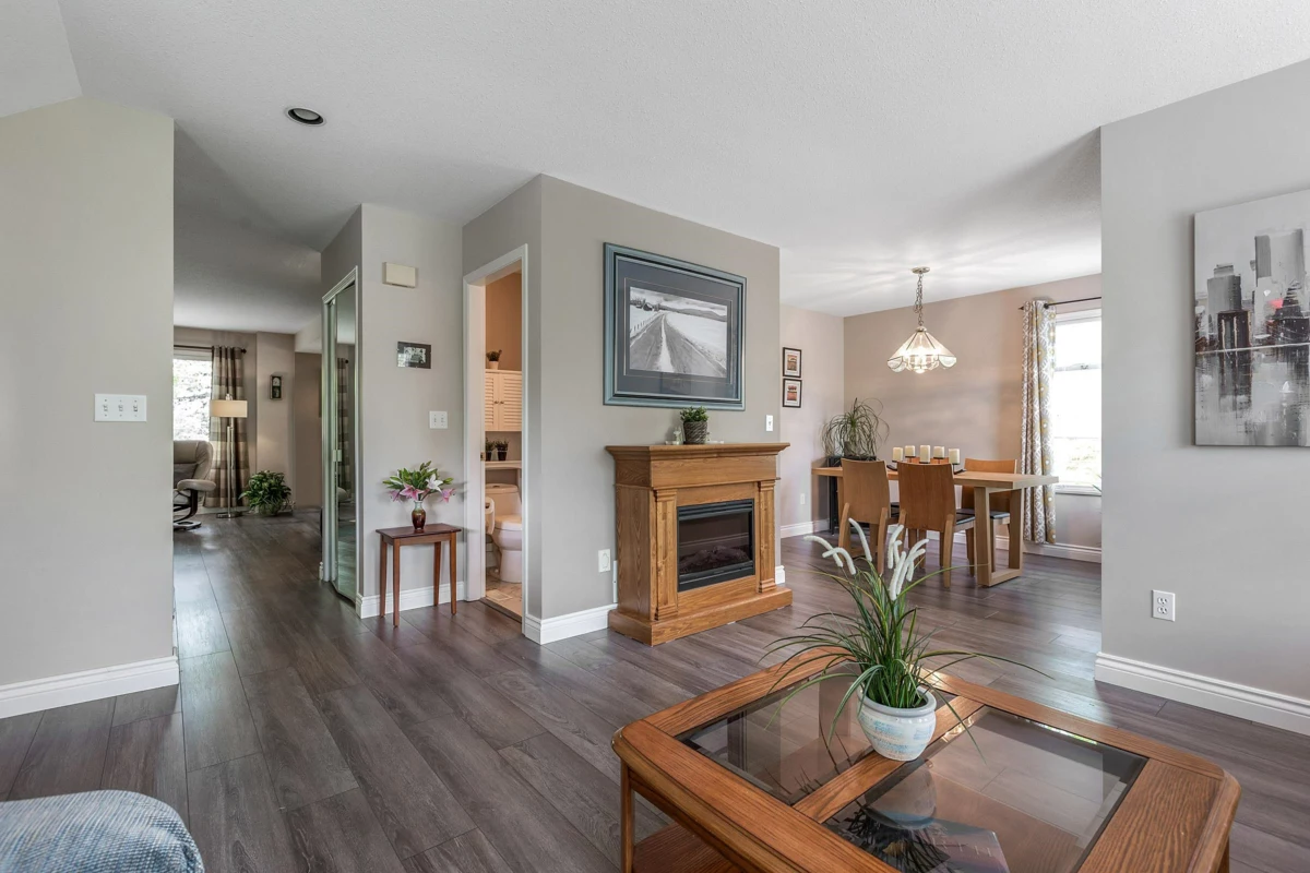 Welcome to Somerset Lane! This stunning corner unit townhouse features 4 bedrooms and 3 bathrooms, offering the spaciousness of a detached house. Large windows provide bright daylight, and the gas fireplace add a cozy touch. The kitchen is large and inviting. New flooring and paint. The basement includes a large room that could be a bedroom or a rec room and is plumbed for a 4th bathroom. Enjoy private outdoor space on the deck or large wraparound yard. Large two car side by side garage easily fits 2 cars. Located in a family-oriented neighborhood with great schools, It’s just minutes walk from a recreation center, community center, library, and shopping. A future skytrain station will be within walking distance, and highways 1 and 17 are a short drive away.
