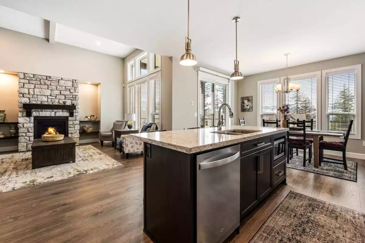 STUNNING 2 storey w/bsmt located in the HIGHLY COVETED Mt. Woodside area! Enter into this SEMI-CUSTOM home w/large office just off the foyer - seamlessly flowing into the grand OPEN CONCEPT living room w/high ceilings & FABULOUS brick-faced propane f/p & MASSIVE WINDOWS facilitating AMPLE natural light throughout! A GORGEOUS kitchen awaits you w/sizable island, S/S appliances, gas range w/quartz counters! The HUGE master on main features access to the large wrap around balcony w/an EXQUISITE 5 pc ensuite including the spa-esque soaker tub, dual vanity & glass shower! Not to mention - the extensive W.I.C. w/built-in shelving. Spacious LOFT upstairs w/ covered balcony, 8 solar panels, A/C, outdoor patio heater, Gen X generator, security system, & ANOTHER F/P in the bsmt - WOW!