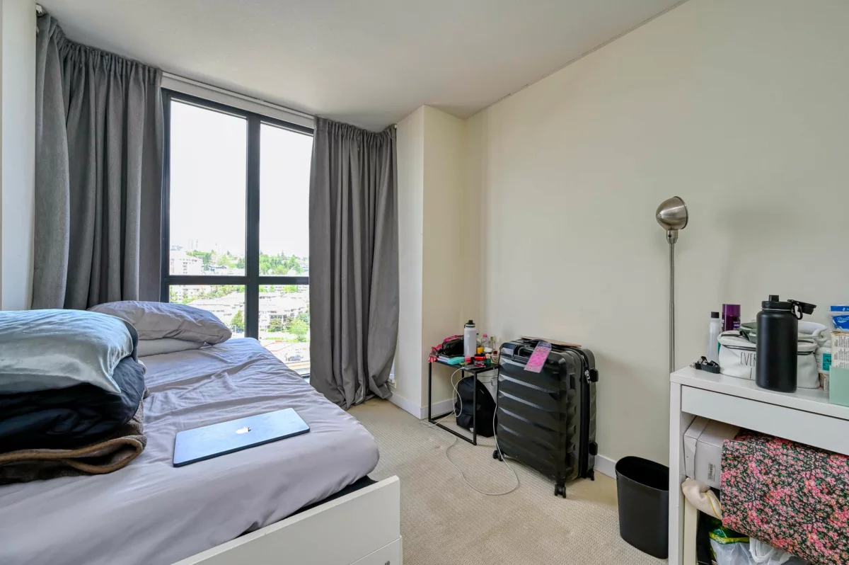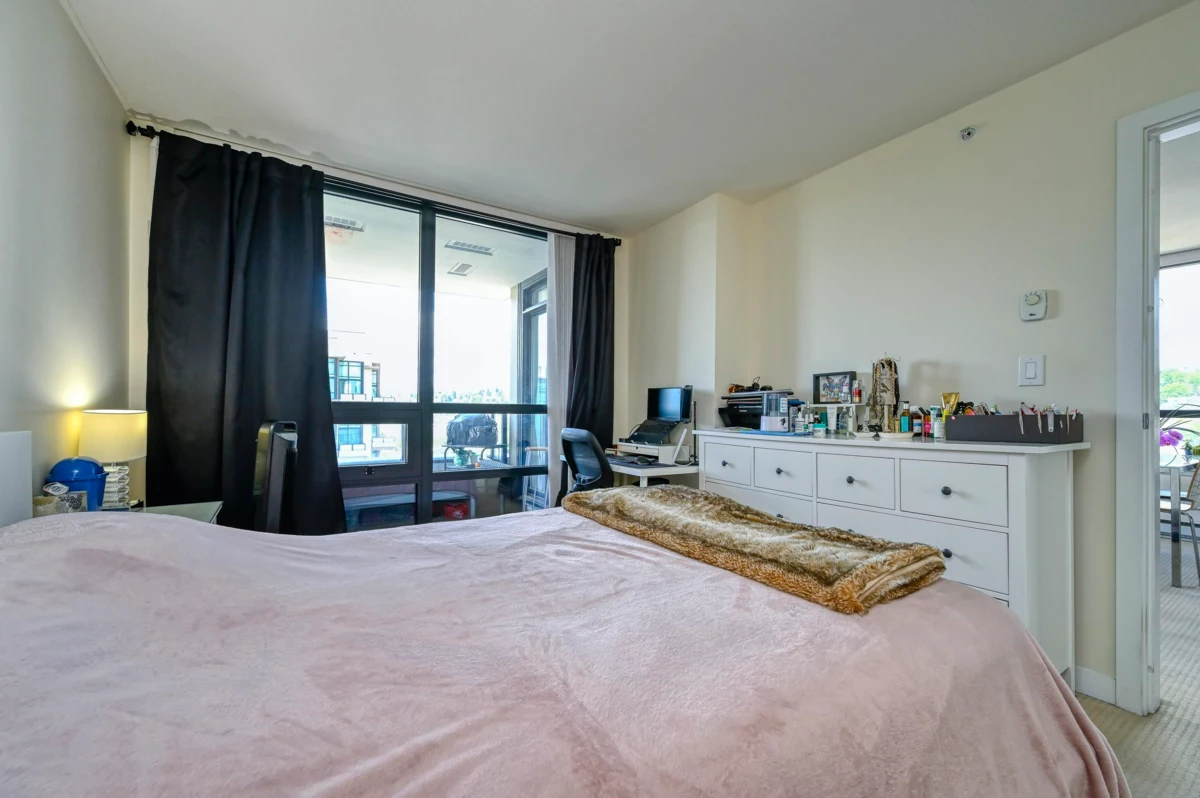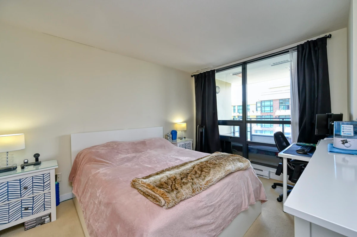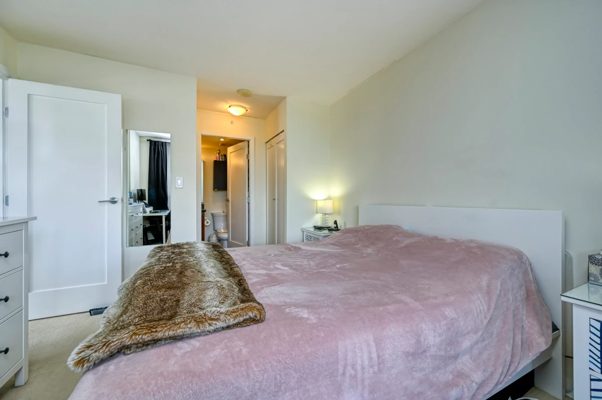 Bright and spacious 2 bed/2 bath corner home with water views at The Q, a concrete building in New West Quay. Functional layout with separated bedrooms, open kitchen/living/dining area, and a large balcony. The king-sized primary features double closets and a 4-piece ensuite. Kitchen offers granite counters and stainless appliances. Well-managed strata with strong contingency. Amenities include a gym, clubhouse, and 4th-level patio. 1 parking included. Pets and rentals allowed. Steps to SkyTrain, River Market, and the Quay Boardwalk.