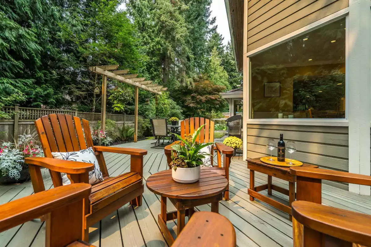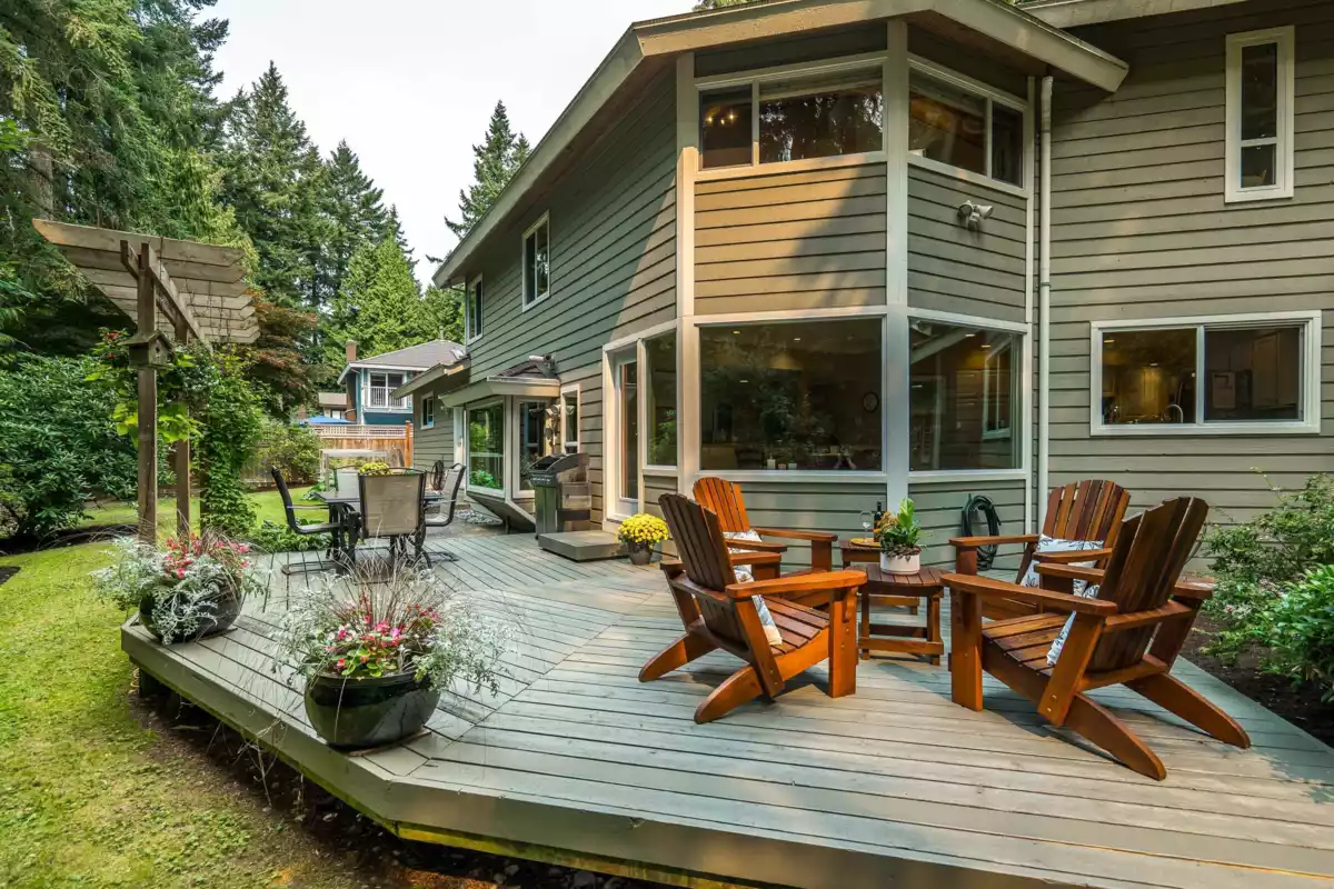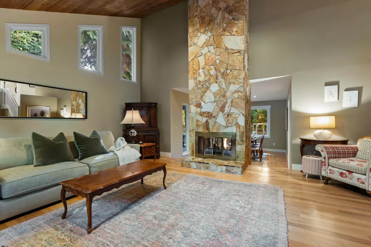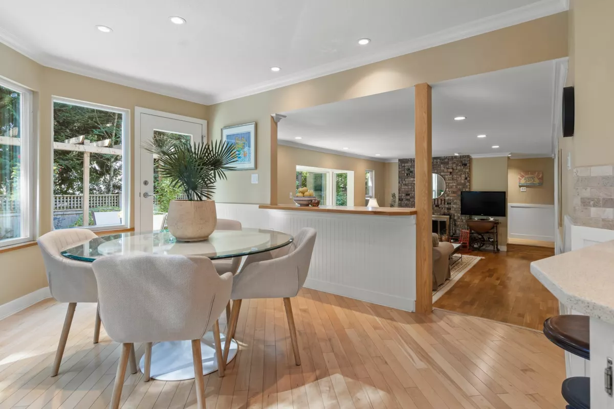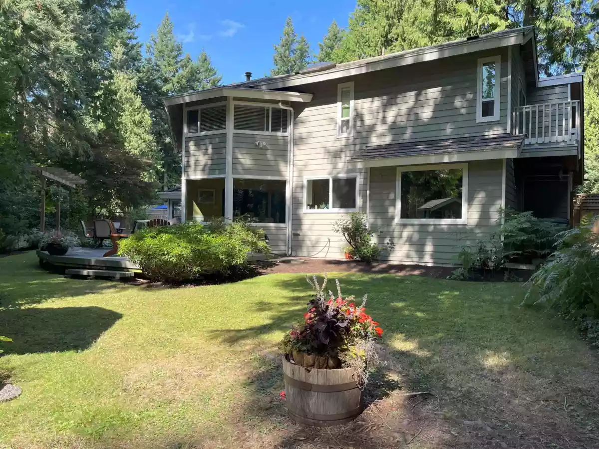 Welcoming family home in peaceful, forested corner of Amble Green on large family-friendly cul-de-sac. Beautifully renovated while retaining its character & charm. Much larger than it appears, almost 3,000 sq ft, 5 bedrooms (3 up, 2 on main) & 3 baths. Perfect for families who want a home office, plus guest room or homestay student. Lovely renovated spacious kitchen w stone counters, SS appliances, pantry & ample storage. Informal & formal dining overlooking gorgeous backyard. Step out onto huge new deck & patios for relaxing & entertaining. Perfect SW-facing backyard is fully fenced w room for kids & dogs to play. Gets nice sun. 100m to French Immersion Laronde Elem. Walk to Elgin Sec. Near walking trails, shopping & beach.