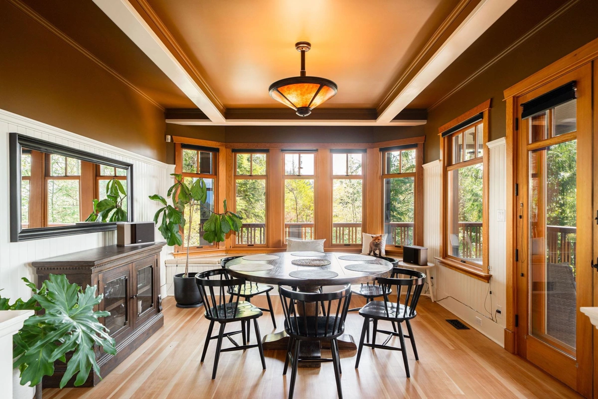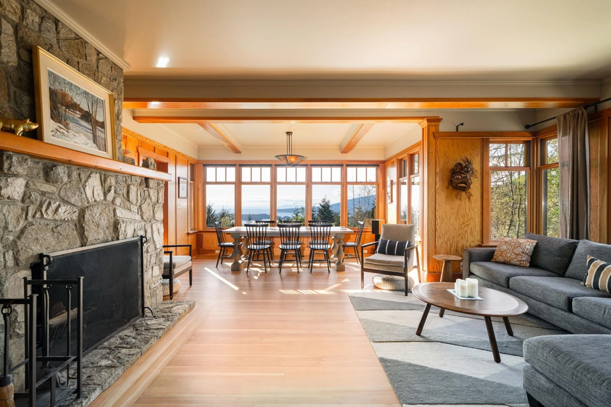 One of the most revered acreage properties on Bowen Island, priced well below assessed value. This private 5-acre elegant, rural estate features a stunning Craftsman home perched high with coastal ocean & island views from every room. The 4 luxurious bedrooms all have ensuites, and 2 bedrooms have their own entries - a perfect setup for a B&B. The kitchen is for those who entertain, with a 6-burner cooktop, double wall ovens, and a separate prep area. Craftsman homes are known for comfort, and this home is no exception with its wood-burning fireplace, warm wood paneling, coffered ceilings, and fir flooring. Outside is an established garden with apple, pear, Asian pear, quince, & cherry, plus many flowering trees & shrubs. It is an exceptional combination of nature, privacy, & luxury.