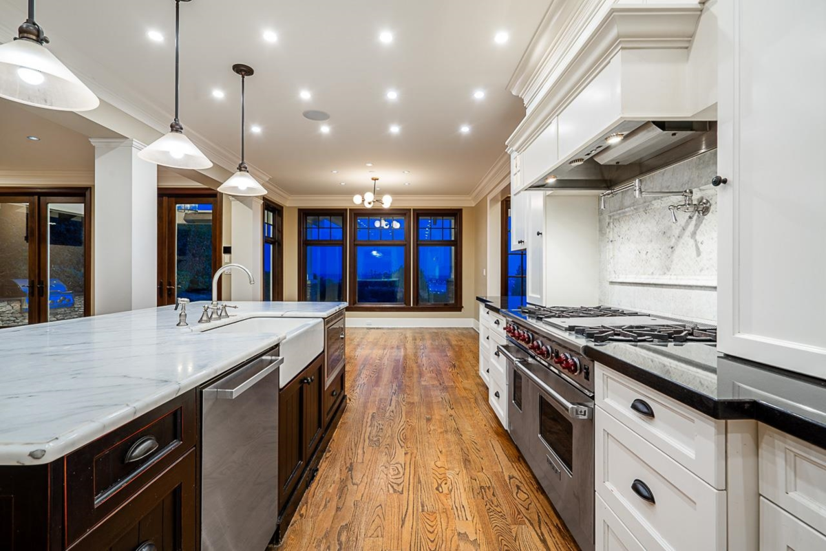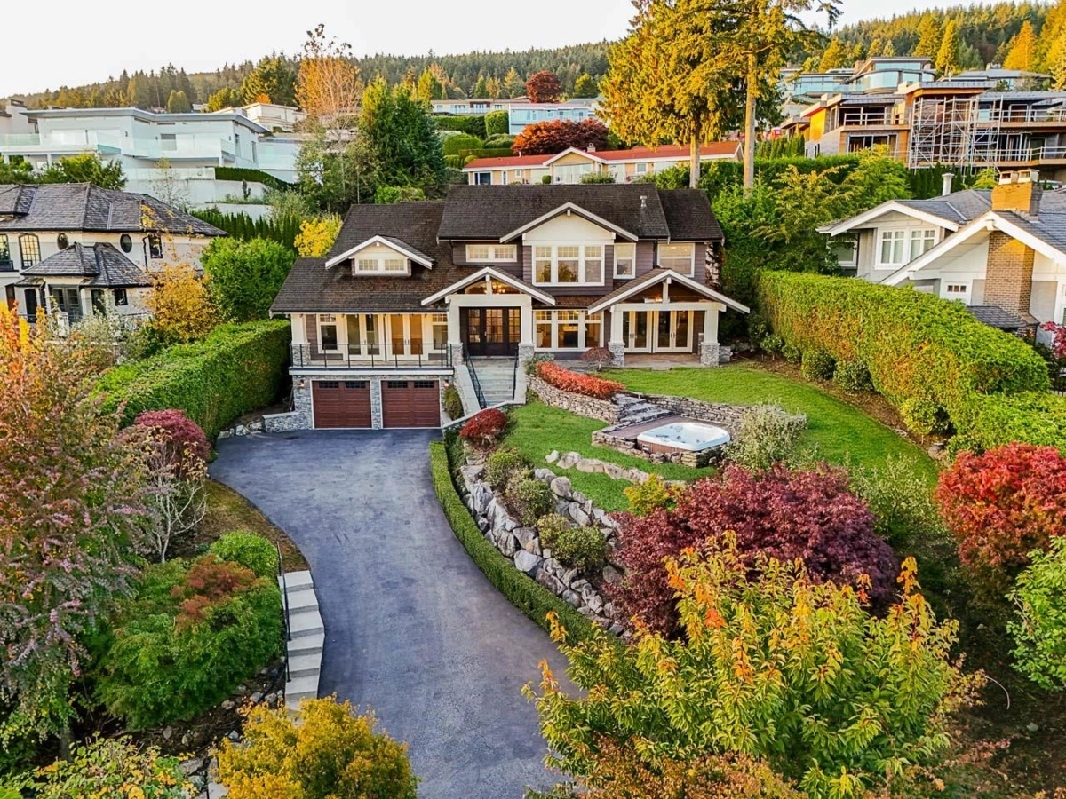 STUNNING 6-BEDROOM CUSTOM FAMILY HOME WITH SPECTACULAR PANORAMIC VIEW OF LIONS-GATE-BRIDGE, DOWNTOWN AND STANLEY PARK ON HIGH SIDE OF A LARGE 17,502 SQFT LOT. This amazing home, with a heated driveway, features on the main flr a spacious living rm and private dining room, stunning gourmet kitchen, eating area, large family room and bdrm/den. Upper flr features grand primary bedroom w/stunning en-suite, plus 3 spacious bedrms. Lower flr features large rec-rm with bar and wine rm ideal for entertaining, 2 additional bedrms and gym. Centrally located, walking distance to Chartwell Elementary & Sentinel Secondary Schools, and only minutes drive to Mulgrave and Collingwood Private Schools. PLUS: heated driveway, A/C, solid hardwd flring, extensive millwork, high-end finishing and much more ...