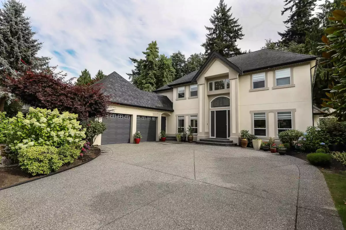 BELL PARK on GREENBELT. 3,388 sq.ft. 2 level on 12,066 sq.ft. lot. 4 bedrooms, 4 baths. Two sets of staircases. Living, family and den on main floor. Very private south backyard on greenbelt. Major renovations including new kitchen, granite countertops, bathrooms, hardwood flooring & painting. Master bedroom has 3 sided fireplaces, sitting room & super size walk-in closet. Executive subdivision close to shops & recreation nearby. Close to Ray Shepard Elementary School & Elgin Park Secondary School.