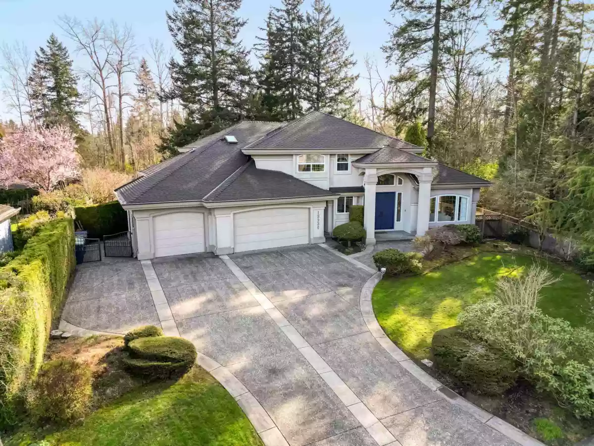 Discover timeless elegance in this custom-built estate located in prestigious Chantrell Park. Designed for exceptional family living, this home features 6 generous bedrooms, including 2 on the main level and 4 upstairs, and 5 well-appointed bathrooms The heart of the home is a spacious kitchen that opens to a warm and inviting family room, perfect for gatherings. The lower level offers a fantastic recreation room and bar area, ideal for entertaining. Step outside to your sun-soaked, south-facing backyard oasis, complete with a sparkling swimming pool, hot tub, and lush greenery. Recent updates include a new roof, hot water tanks, and fresh designer paint. Nestled against a peaceful greenbelt and walking distance to Elgin Park Secondary and Chantrell Creek Elementary schools