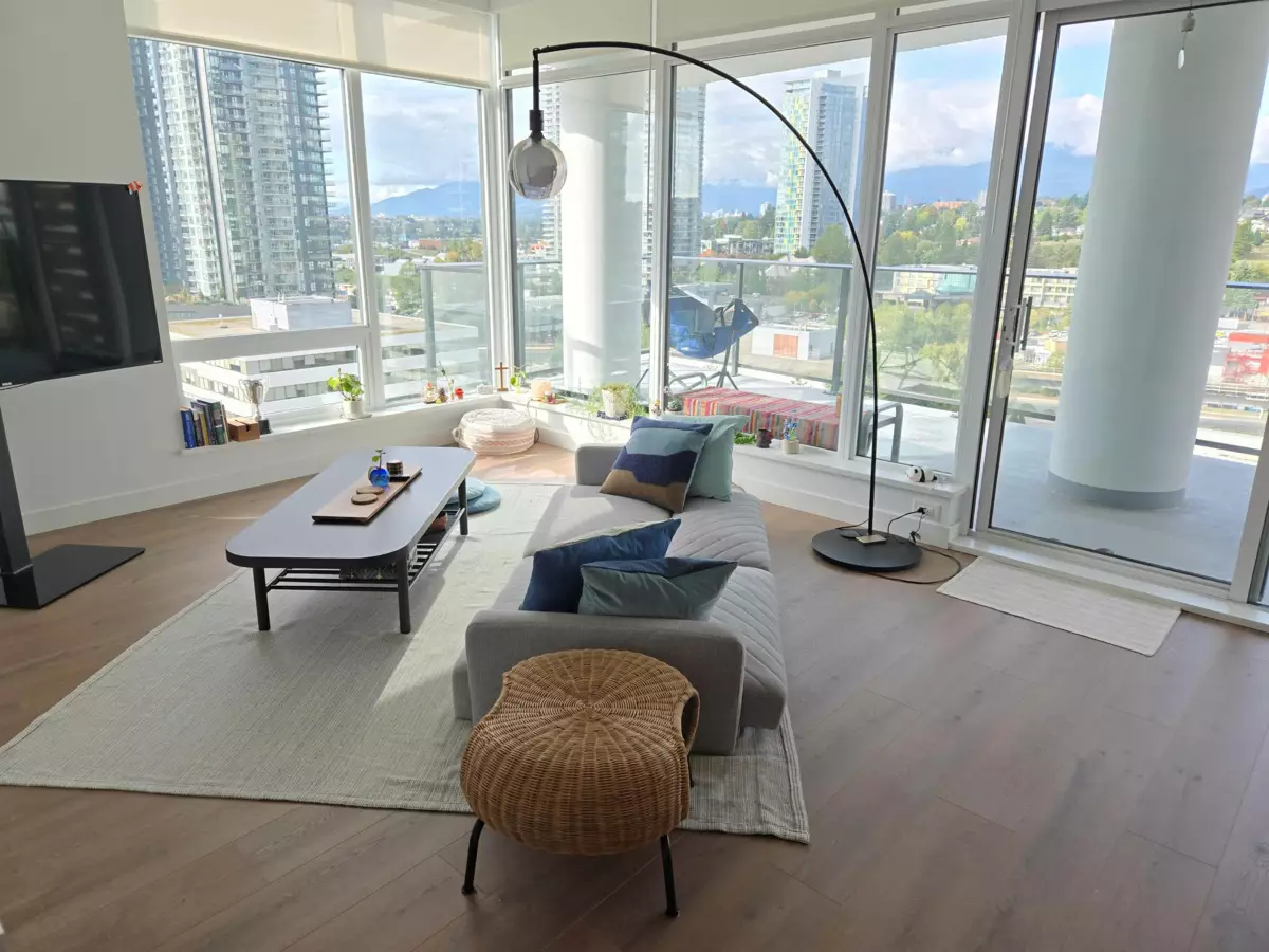 Discover modern urban living at its best in this beautiful 2-bedroom, 2-bathroom condo perfectly situated in the heart of North Burnaby, just steps from The Amazing Brentwood. This bright and spacious 907 sq.ft. home features a smart open-concept layout and an expansive 315 sq.ft. balcony — a rare gem, ideal for relaxing with morning coffee or entertaining friends while taking in the breathtaking mountain, city, and sparkling night views. 1 parking w/ EV charger and 1 locker, plus unbeatable location near the SkyTrain, major bus routes, shops, restaurants, and cafés. With Costco just 5 minutes away and easy access to Highway 1. Set in a vibrant and fast-growing community popular among young professionals and urban families. Open house Nov 16, Sun, 2-4 pm.