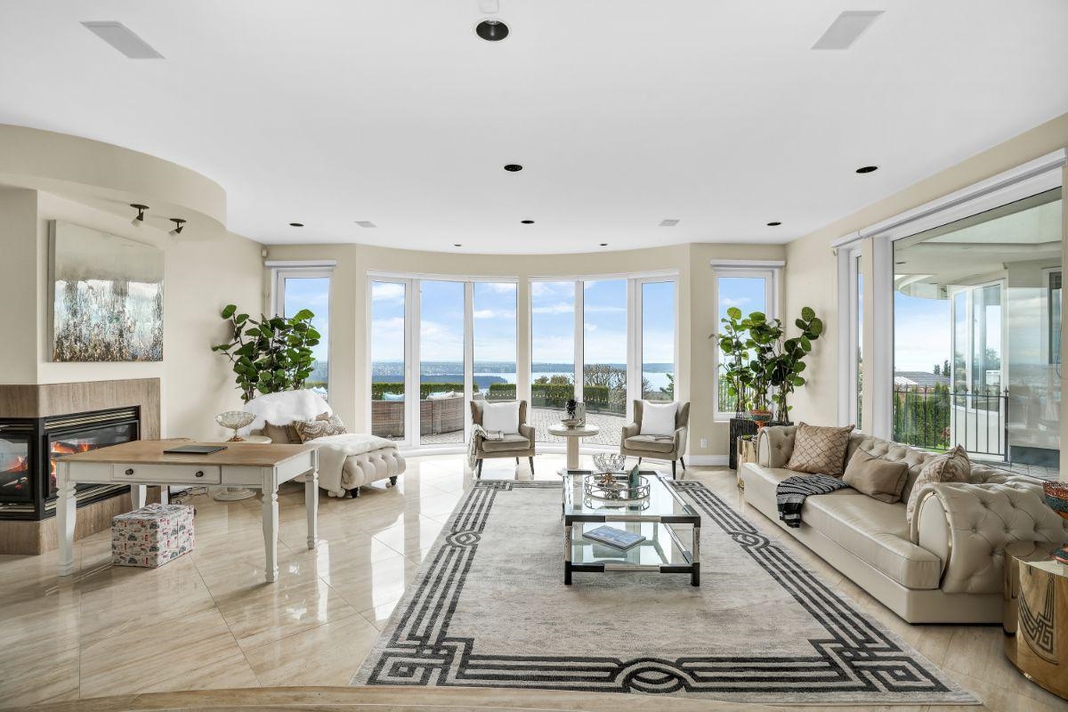 This rarely available gated mansion sits on a stunning corner lot with nearly 23,000 sqft of land.This beautifully landscaped lot contains a fully flat and paved driveway, huge frontage,10 parked cars and a 3-car private garage. This rare property has some of the city's most gorgeous panoramic views of the sparkling ocean, breathtaking mountains. double-height curved staircase, stone-slab floors & spa-like ensuite on the main level which opens to sun-filled terraces & outdoor lounge w/BBQ. 8,200 sqft of living space, this property is meticulously designed with luxury. This unit was extensively renovated in 2016. 4 ensuite oversized bedrooms on the upper floor, plus another bonus master bedroom on the main floor.