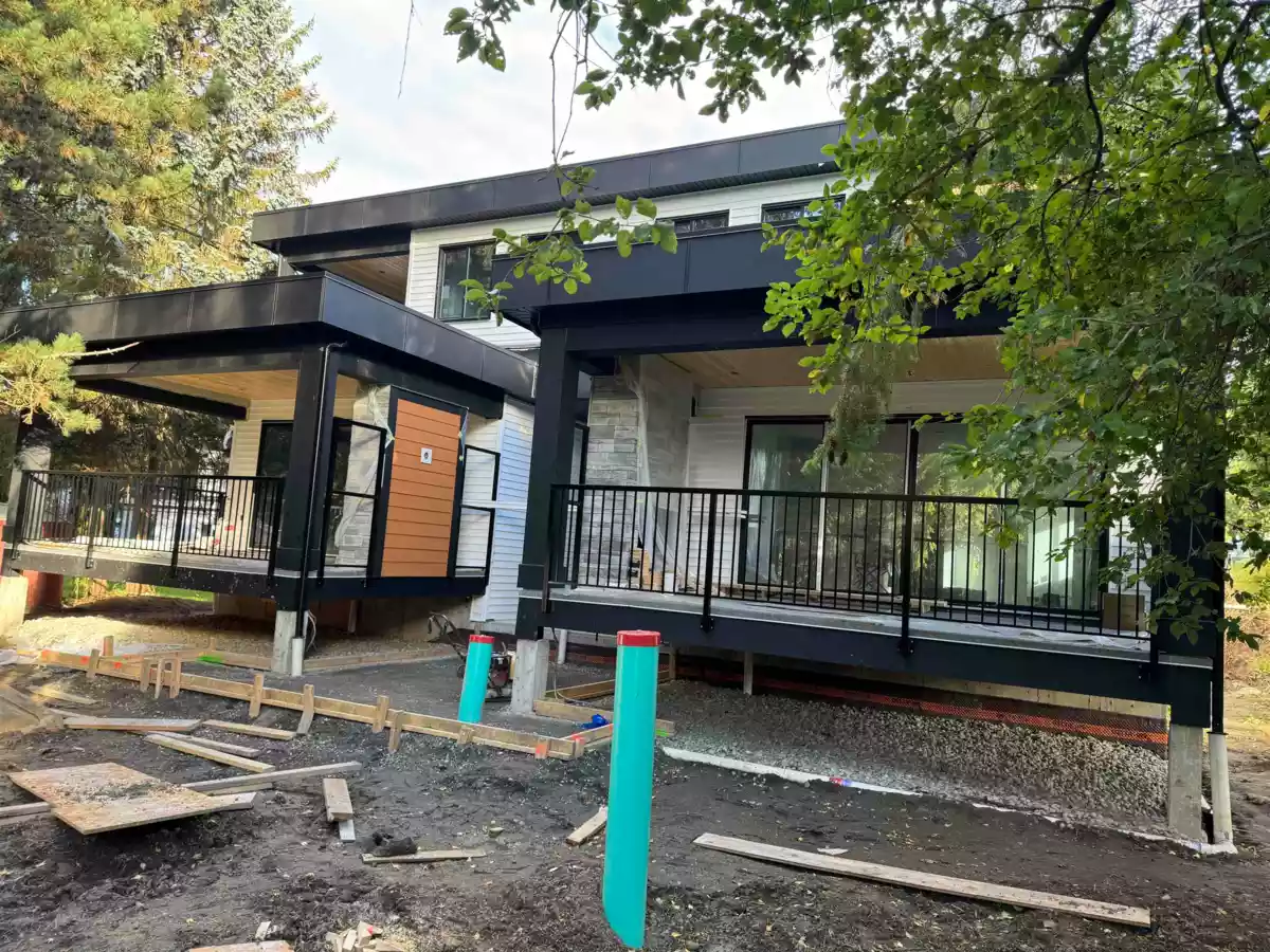 Sneak Peak - Ready for occupancy November/December 2025 - Still time to choose colors. Prime White Rock West Side Location. Private, sunny, southern exposed 4,545 sq. ft. lot, 30.05' frontage x 151.50' depth. No expense spared, top of the line construction and materials. 3503 sq. ft. two level, walk out basement strata 1/2 duplex. Main floor open concept walks out to 19' x 12' covered sundeck with gas fireplace, ideal for entertaining. Above main 4 bedrooms, including gorgeous primary suite with private sundeck. Basement media room, recreation room, with plumbed bar, 5th bedroom, 2 full baths ideal for extended family. Plenty of parking. Convenient location, walk to Bayridge and Semiahmoo Schools, transit, White Rock beach and shopping.