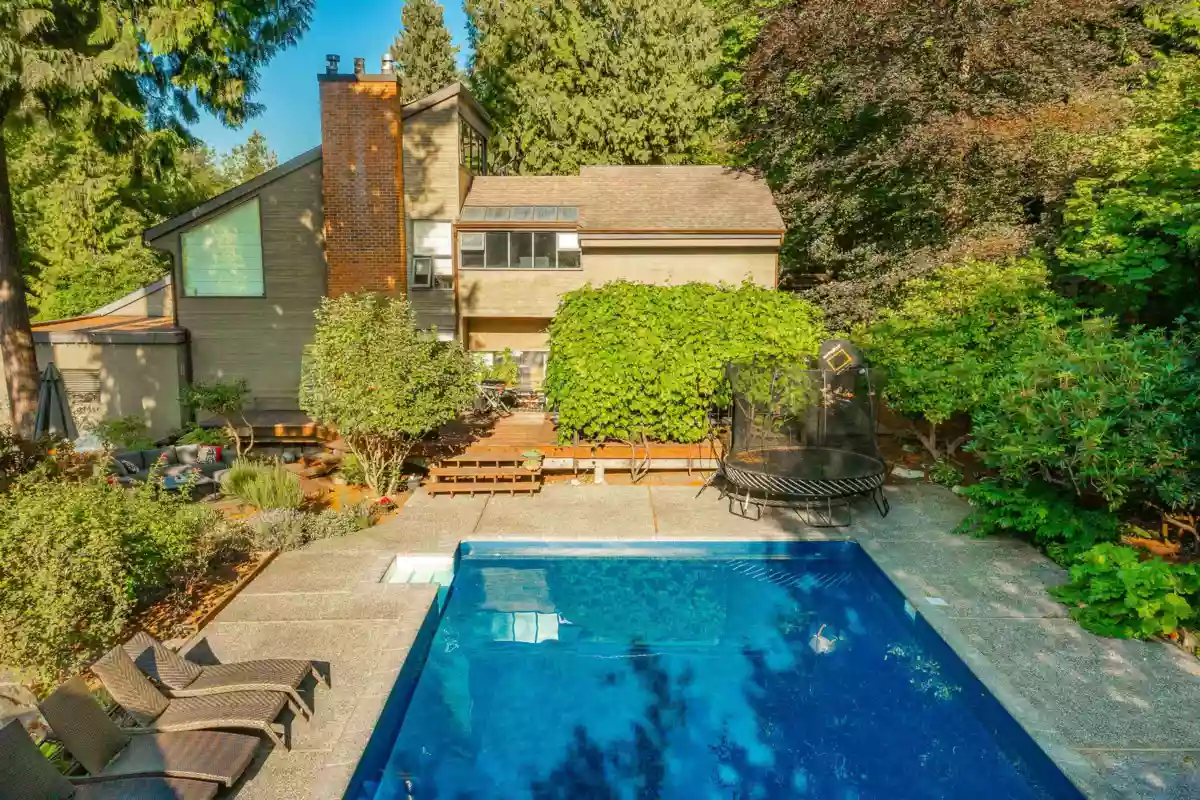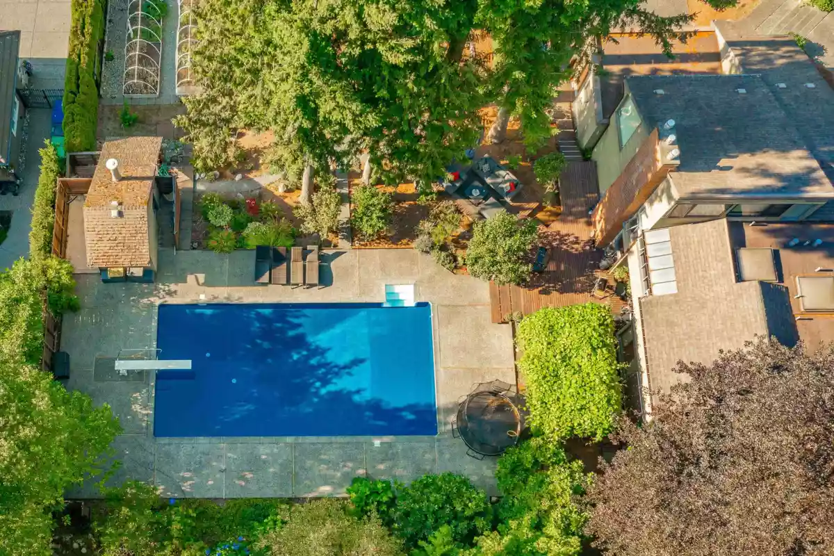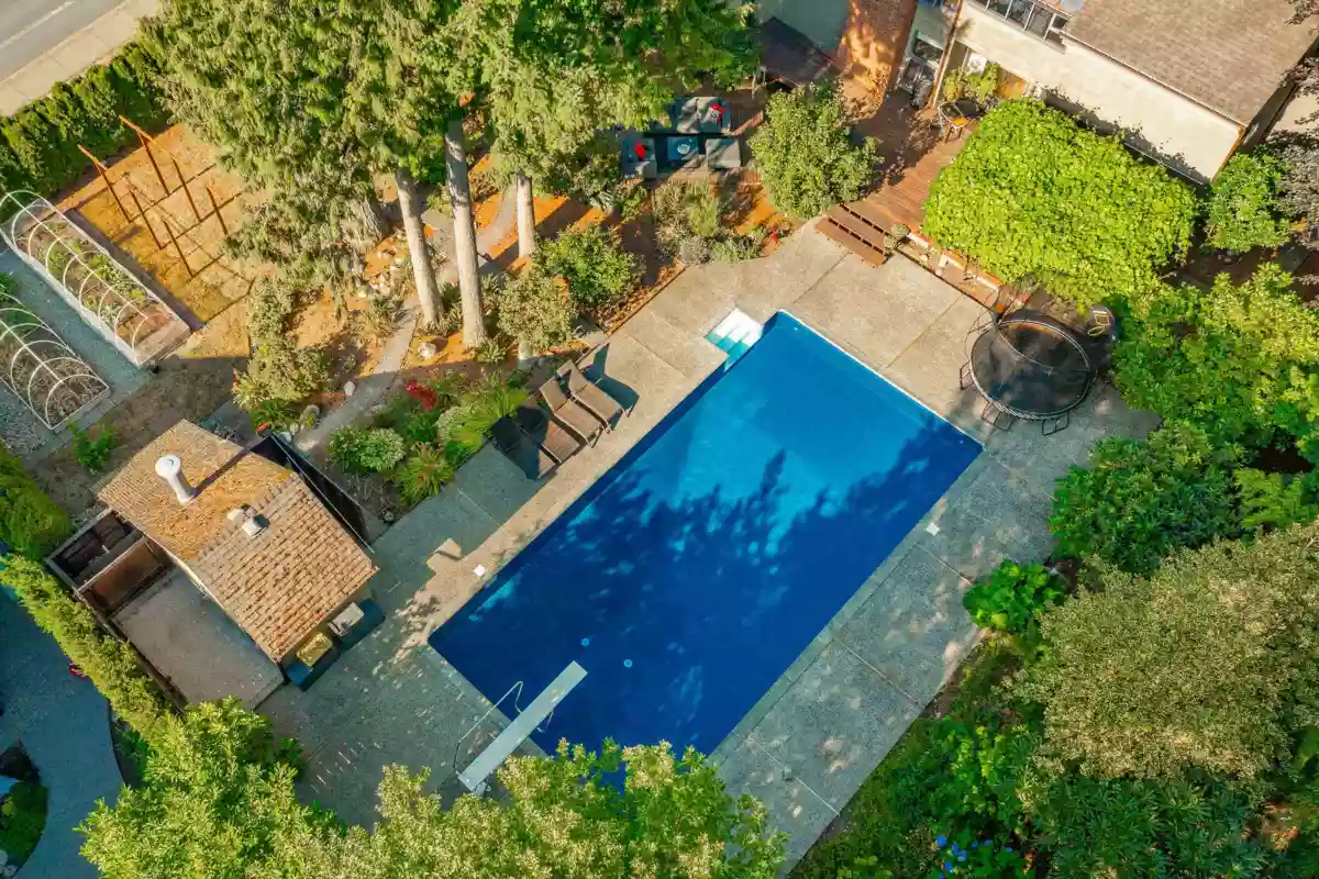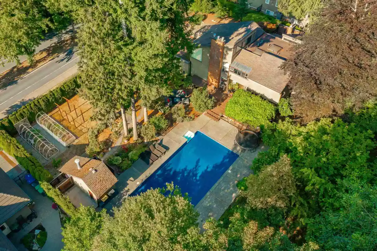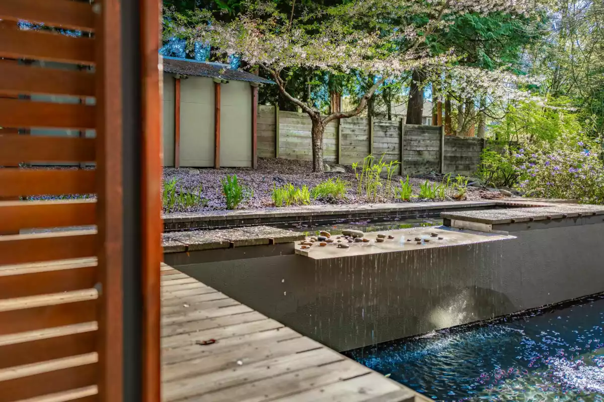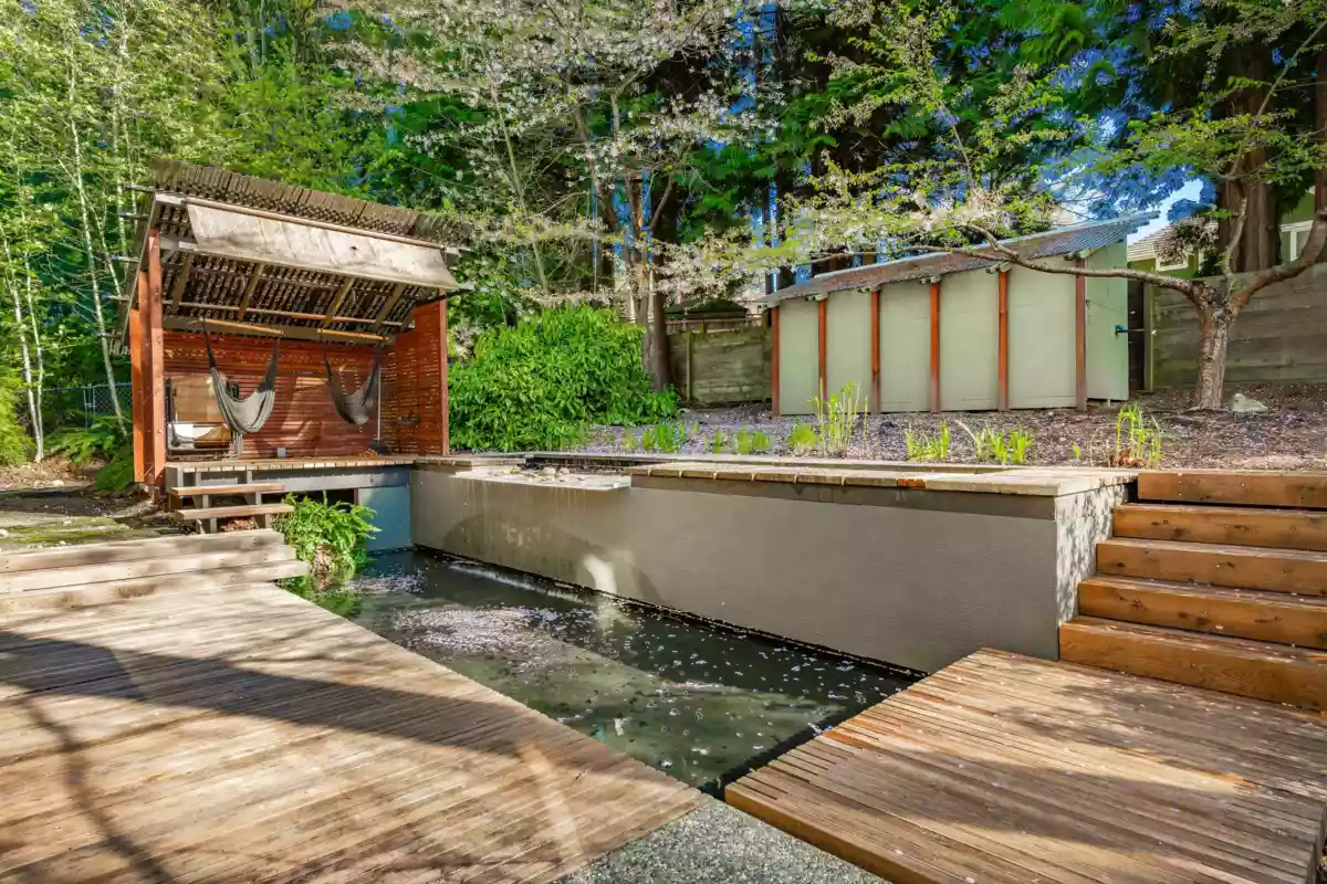 Welcome to your own private West Coast retreat — where timeless design meets resort-style living. Set on a sprawling 21,597 SF lot with 151 feet of frontage, this 4,778 SF West Coast Architectural home spans three levels, offering 5 bedrooms and 3.5 baths. Natural wood, glass, and modern updates create a warm yet sophisticated flow throughout. Step outside and discover an entertainer’s dream: a 44' x 24' pool with a 10-ft diving end, outdoor sauna, peaceful pond framed by hammocks, and lush gardens designed for relaxation. Whether hosting friends or enjoying quiet family moments, every corner of this property invites connection to nature and lifestyle. With the rare potential to subdivide into two lots, this home is not only a sanctuary — it’s an investment in your future.