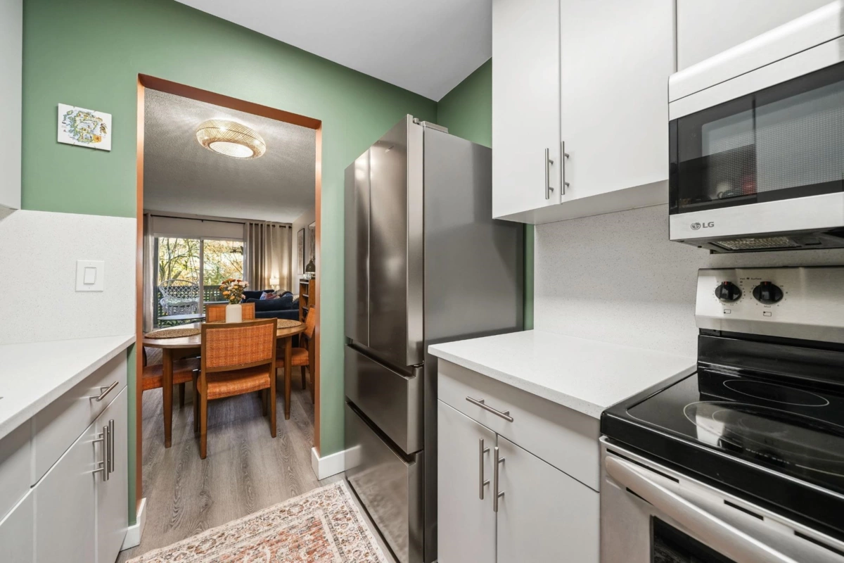 Experience peaceful living in a park-like setting! Fully renovated 1-bedroom home at Westhill Place, perfect for first-time buyers or investors. This quirky north-west facing unit surrounded by nature stays cool in summer and cozy in winter, offering year-round comfort and privacy. Enjoy a modern kitchen and bathroom, new flooring, fresh paint, and updated appliances. Well-maintained complex includes an indoor pool, gym, and recent upgrades to plumbing and windows. Just steps from Westhill Park, trails, daycare and sports fields. Minutes to SFU, Moody Centre Station, and Rocky Point. OPEN HOUSE: Nov 29th & 30th, 2-4 PM.
