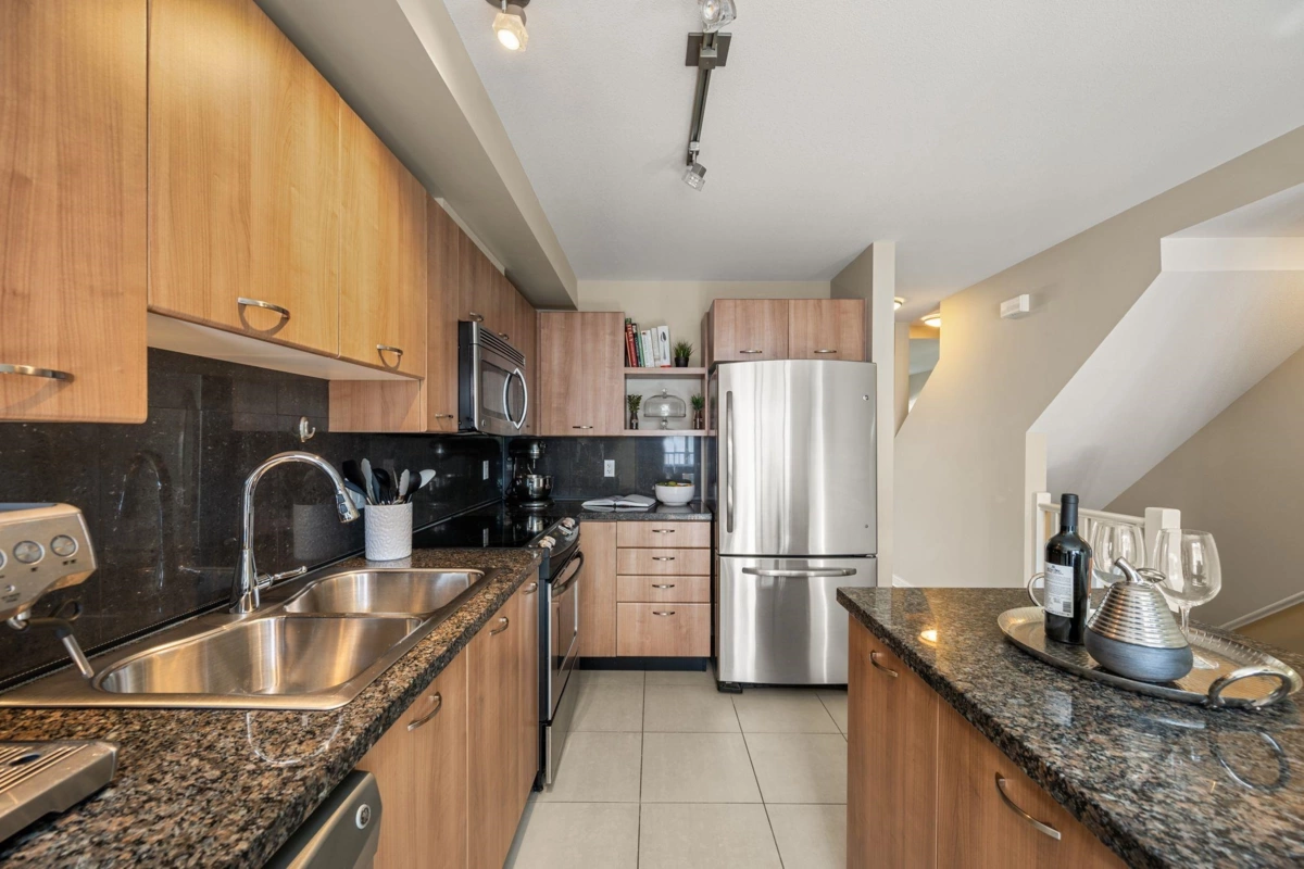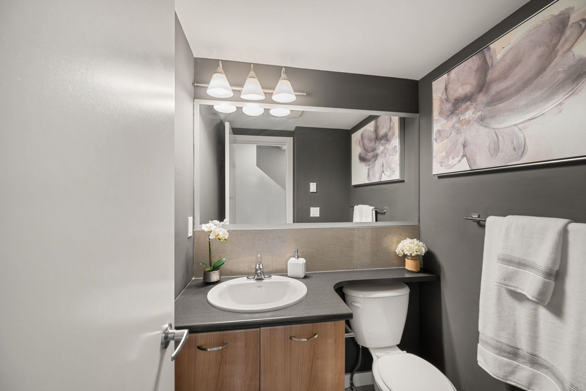 Welcome to Salus by award-winning ADERA! Beautifully maintained 3-bdrm, 2.5-bath t/home offering 1200+ sq ft of functional & stylish living space in a vibrant, resort-style community. Bright & spacious main lvl features oversized living rm bathed in natural light thanks to windows that span across the space. Modern kitchen equipped w/ granite countertops, an island, & SS appliances. Bonus- convenient powder room on the main floor for enhanced functionality. Upstairs, you’ll find 3 bdrms & 2 full baths. Enjoy access to premium amenities incl'ing an outdoor pool, hot tub, sauna, steam room, fitness centre, yoga studio, spa treatment rooms, lounge, library, entertainment rm, & a 3,500 sq ft rooftop patio with bbq area. Easy access to commuter routes, all amenities nearby.