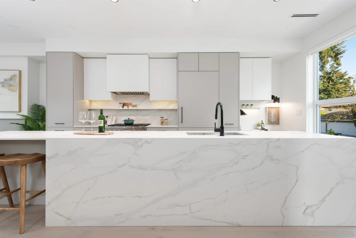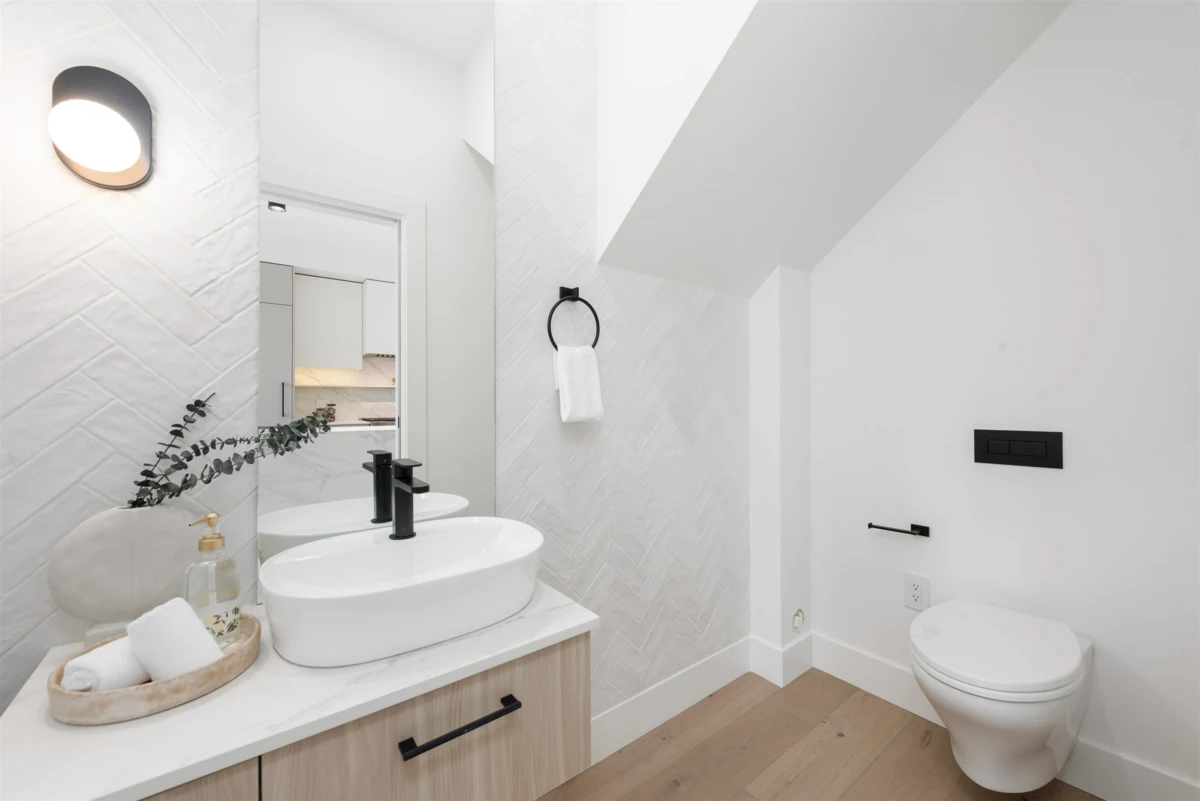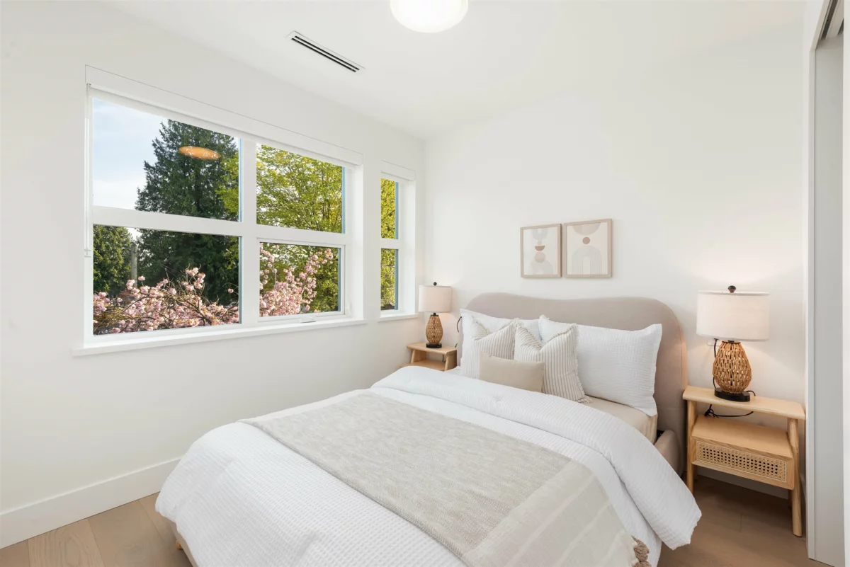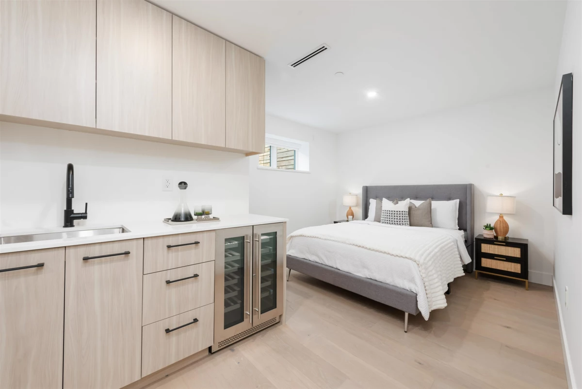 Experience refined luxury in this exclusive 4-bedroom, 3.5-bath Vancouver residence developed by Peterson, offering 1,849 sq.ft. of elegant living space with an attached garage for convenience and generous private outdoor space. Thoughtfully designed with a chef’s kitchen featuring Wolf and Sub-Zero appliances, custom cabinetry, and sleek Dekton countertops. The spa-inspired primary bath includes a freestanding tub, custom shower, and Calacatta tile. Premium features include hardwood floors, vaulted ceilings, Sierra flame fireplace, radiant heating, air conditioning, integrated audio, and EV charging. Enjoy a media room with wet bar, full-size laundry, custom millwork and superior construction. Located in the coveted Sir William Osler Elementary and Churchill Secondary catchments