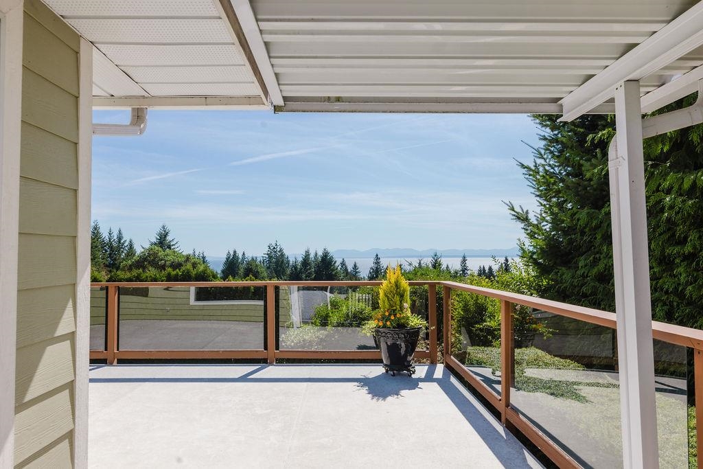 Enjoy stunning views of the Salish Sea and Vancouver Island from this impeccable 3-bedroom, 2-bathroom rancher situated on a beautifully landscaped level property. With its expansive deck, covered area, fenced yard, RV parking and ample privacy, this residence also features a large garden shed, beautiful oak floors, granite countertops, and more. This rare opportunity to acquire an ocean-view rancher should not be missed.