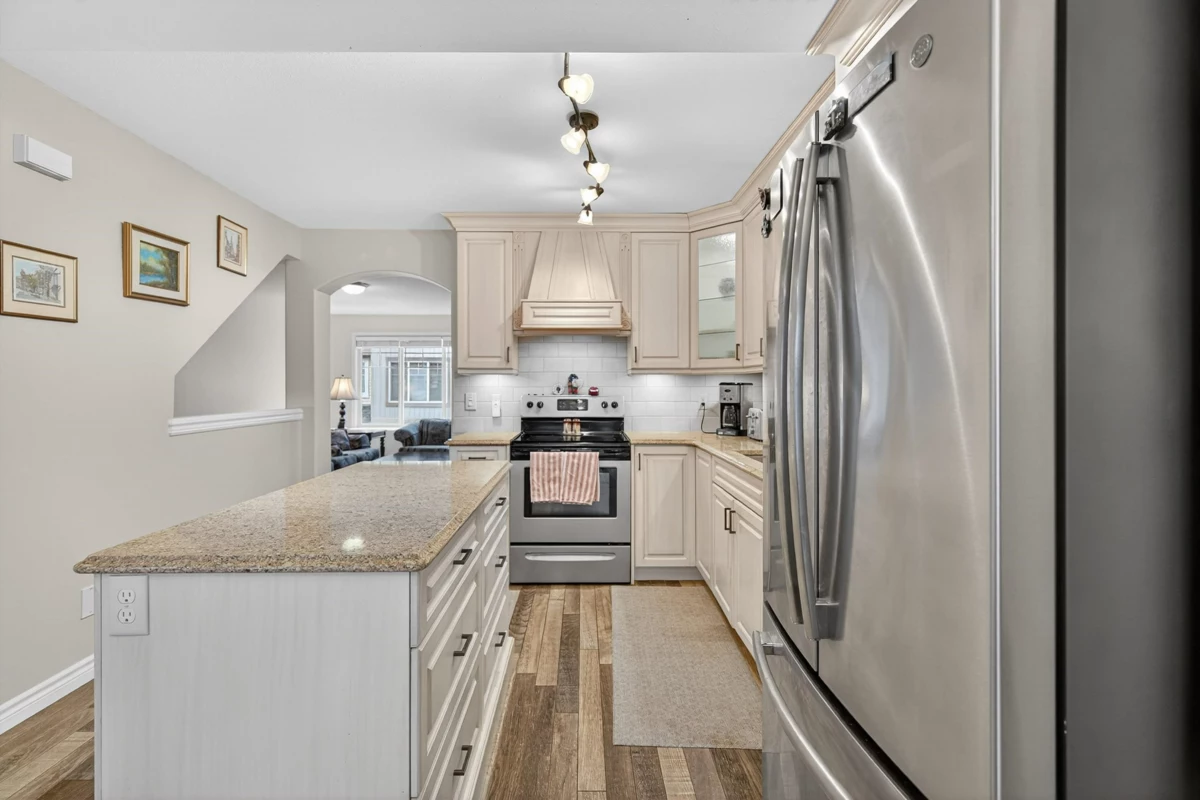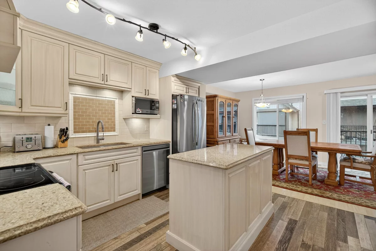 A townhome offering flexibility, comfort and quality living!! With three bedrooms upstairs, a versatile fourth room below, and three full baths (not two). You will enjoy year-round comfort with a premium heat pump, a beautifully renovated kitchen, and a fully fenced private yard. The main floor features a spacious, inviting living room and a stunning kitchen with pantry that opens to a bright dining/family area with a balcony. Upstairs provides a generous primary suite with walk-in closet and ensuite, two additional bedrooms, and full size laundry. The lower level adds a stylish bedroom or rec room with its own bath unlike most units in the complex. Pet friendly and perfectly located—book your private showing today.