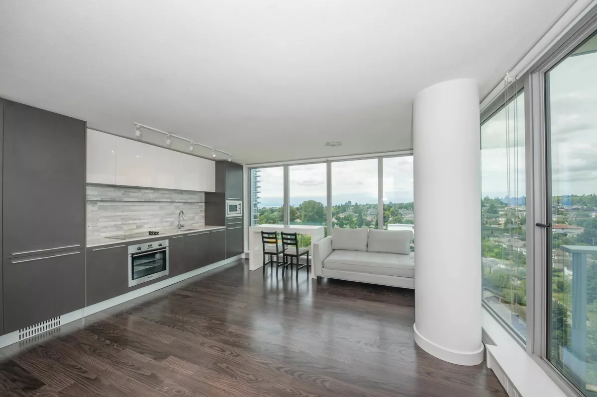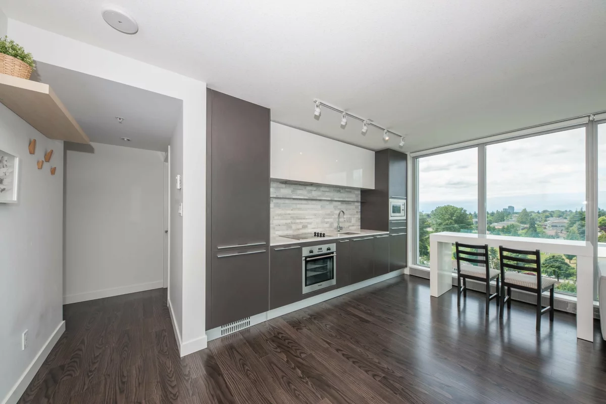 MC2 corner unit. 270 degrees STUNNING VIEW OF CITY, NORTH SHORE, MOUNTAIN and beyond. Open layout with floor-ceiling windows. Modern kitchen with sleek European cabinetry, integrated Blomberg appliances and quartz counters. Real Terra Wood flooring in your living & dining room & a JAGA air cooling system. Steps to Skytrain Station, T&T supermarket, shopping centre, restaurants, theater and bank. Don’t miss out! Call to book your private showings.