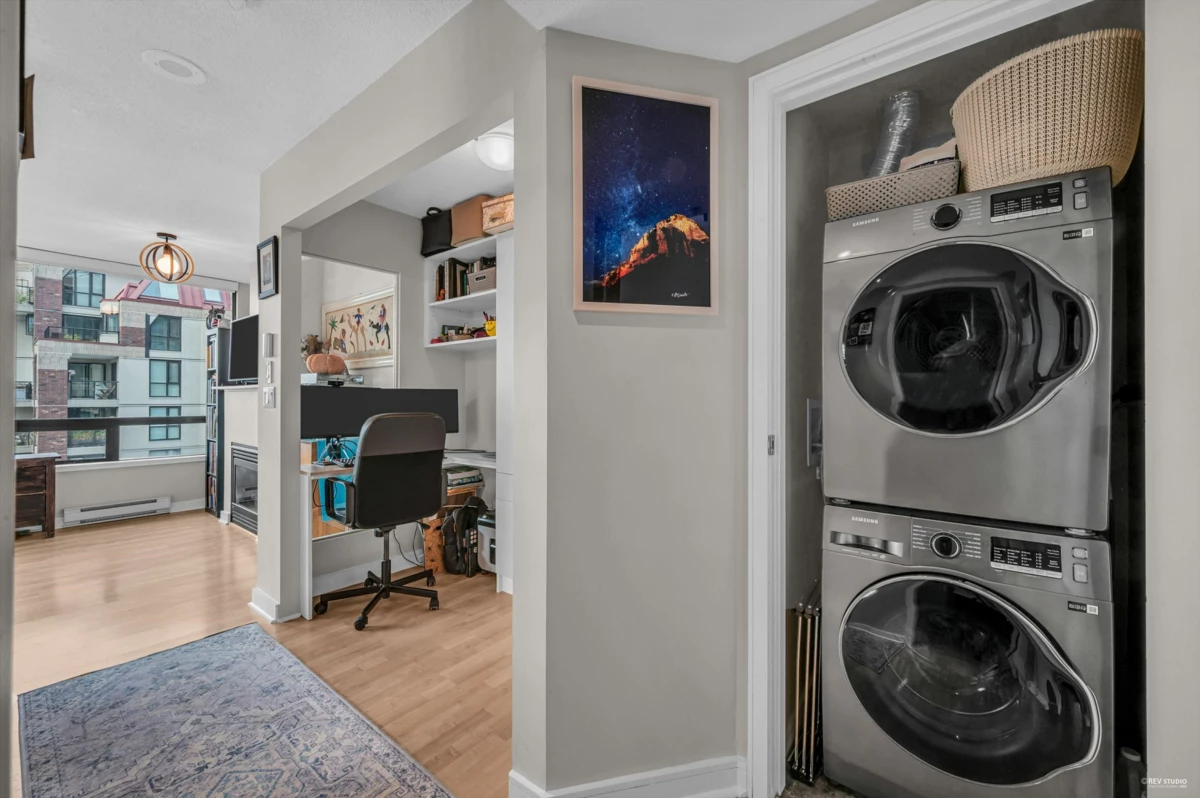 Location-Views-Quality. This 1 bed, 1 bath plus den and separate solarium flex space corner unit gives you all aspects of a home you've been searching for. Views West to English Bay and South West to False Creek truly show you why everyone wants to live in Vancouver. Upgraded stainless steel appliances only a few years old, custom built in cabinetry and built in desk in the den along with recently upgraded kitchen counters truly show the level of care and detail in this home over the years. The well managed strata has kept the building in top form over the years with proactive maintenance. Please reach out for additional upgrade details.