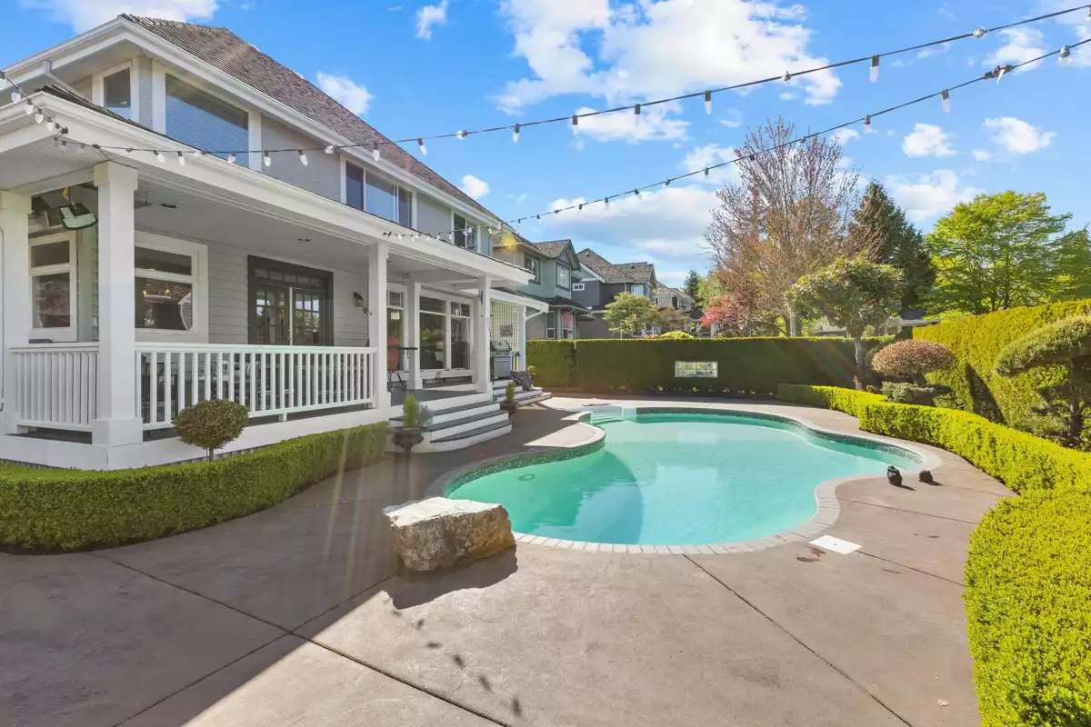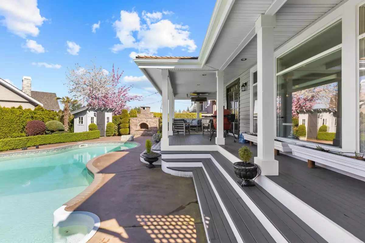 Welcome to the ultimate West Coast lifestyle where luxury, location, and mountain views collide in this Morgan Creek custom home, designed to impress. Step into your backyard oasis with a sparkling saltwater pool, expansive decks, and a stunning wood-burning fireplace. Inside, the bright open layout features a sleek kitchen with granite counters and hardwood floors flowing into a welcoming Great Room. The formal dining room, main-floor den, and oversized laundry add functionality. Car lovers, don’t miss the dream garage with vinyl floors and built-ins! Upstairs, the primary suite offers breathtaking mountain views. The finished lower level has it all: media room, bar, gym and guest room, and plenty of space. Morgan Elementary and Grandview High catchments and within minutes of Southridge.
