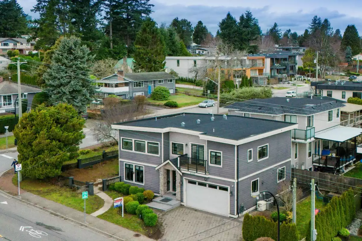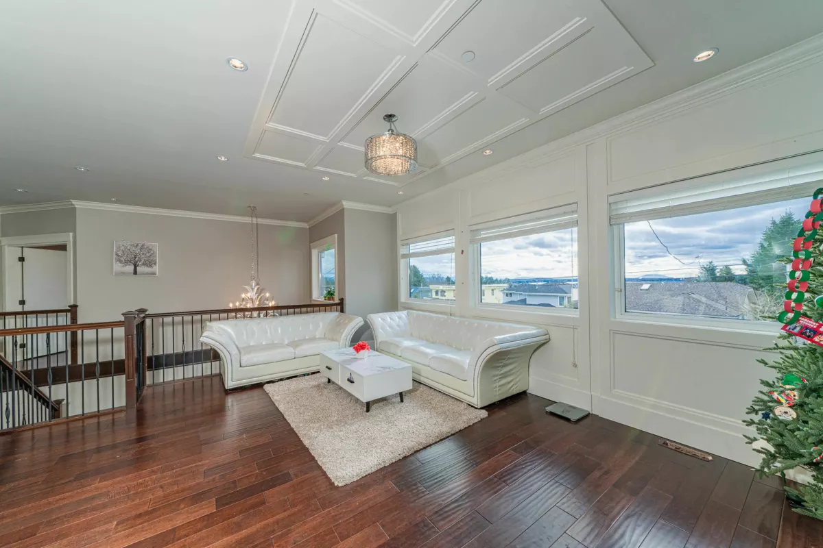 Stunning OCEAN, MOUNTAIN and CITY view. Premium custom built home featuring reverse floor plan with kitchen and master bedroom on the top floor to take advantage of the ocean views. Open concept floor plan with bright kitchen with accent lighting, granite counters, grand island and stainless steel appliances.The Master bedroom retreat with spa style ensuite, walkin closet, private balcony and view of ocean & Mnt. Baker. Main floor features 2 large bedrooms both ensuited and a large sunny office. Basement boasts a recroom with wetbar,and Full media room + 1 Bedroom legal suite with Air BNB license. A/C, dual heating system(Furnace and heat pump), and Generator. Just a short walk to the beach,shops,restaurants. Peace Arch and Earl Marriott catchment. Open House: Sat, Nov 1@2-4pm.