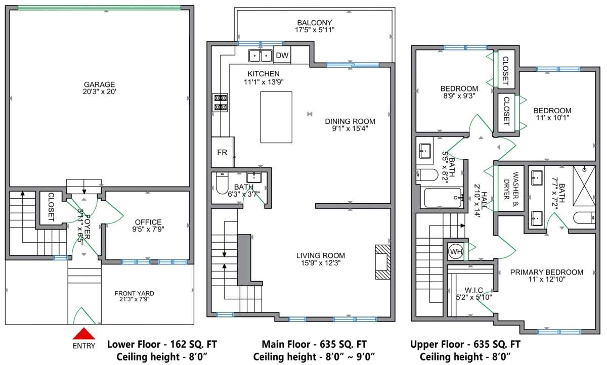 | Below | Flex Room | 9'5 x 9'5 ft |