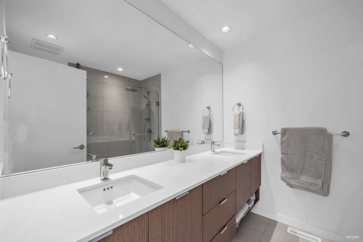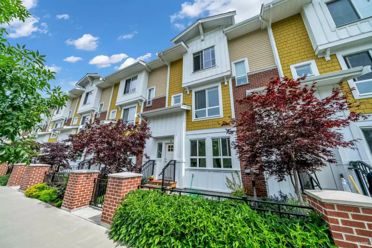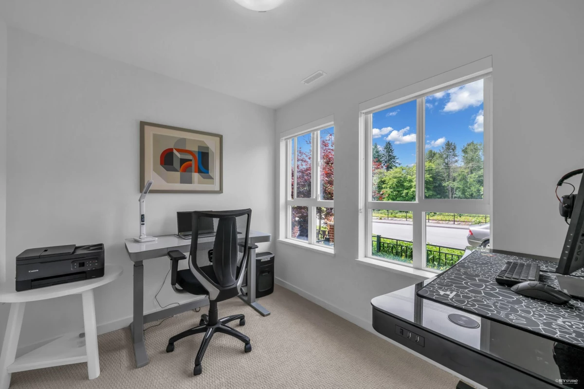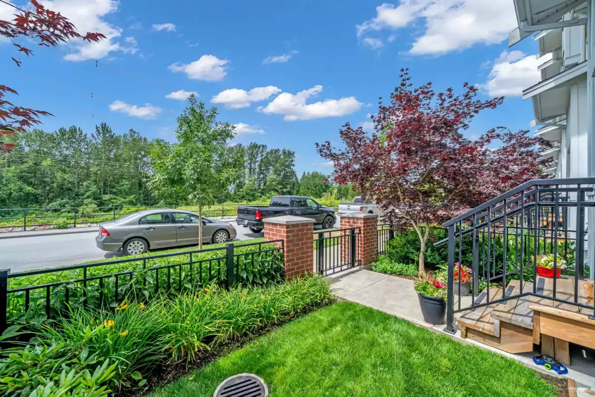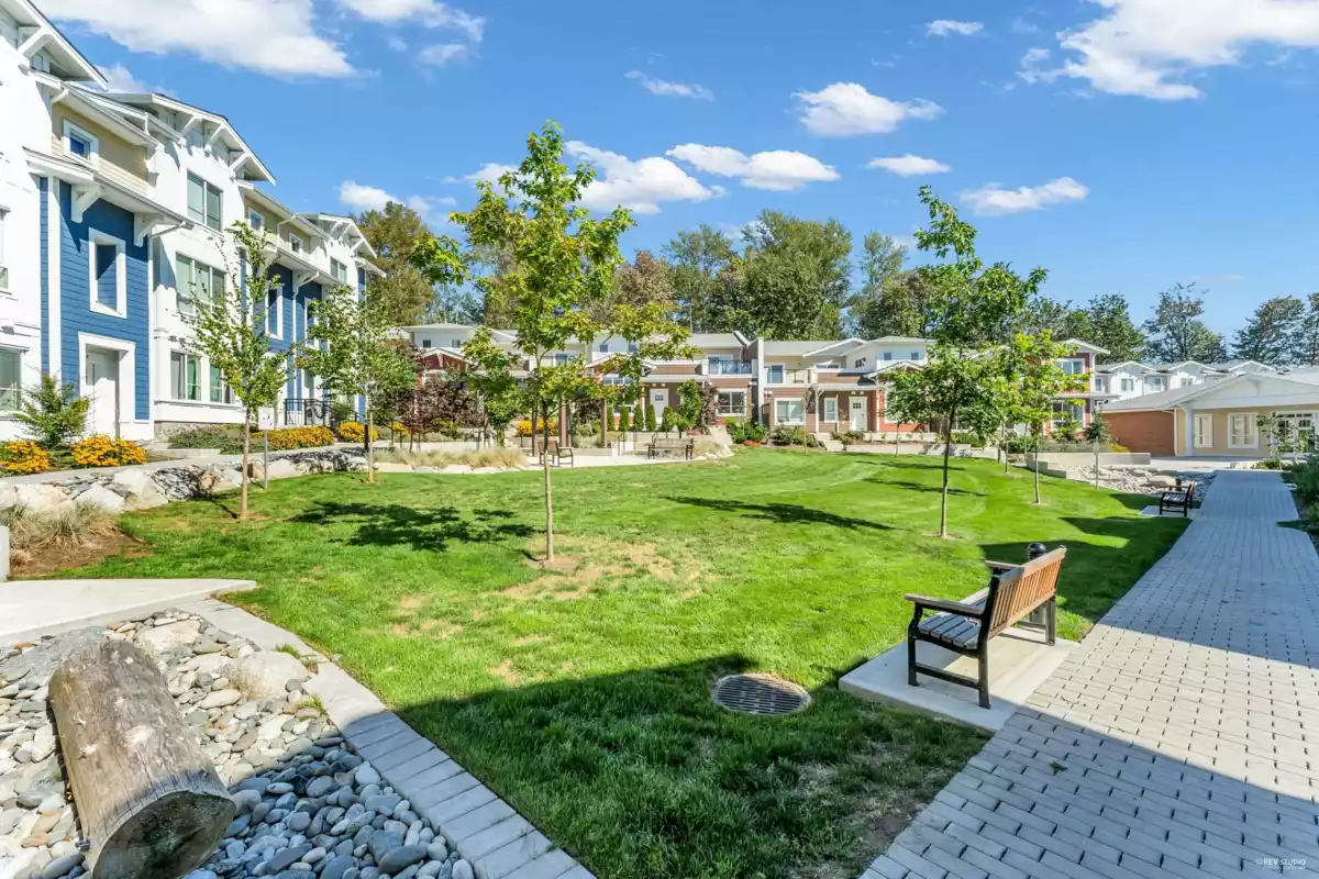Welcome to this rarely available outside unit at Hazelwood. This pristinely kept 3 bedroom and large office, feels like a detached home located on the quiet side of the complex. Easy access to street parking from your private/enclosed front yard and front door, looking out to the unobstructed green space. The main living area features a very efficient floorplan with no wasted space. That opens up to the dining and kitchen area boasting high end appliances and designer cabinetry. To top off the luxury checklist, this unit also features a side by side double garage with epoxied floors and central air-conditioning. Bonus! State of the art amenities with VERY LOW strata fees!