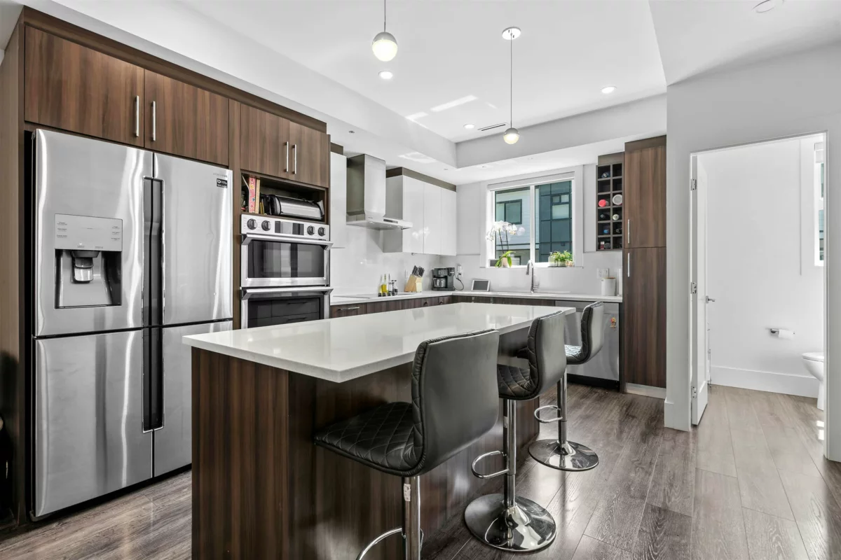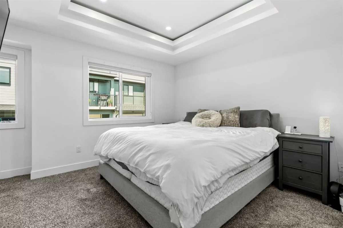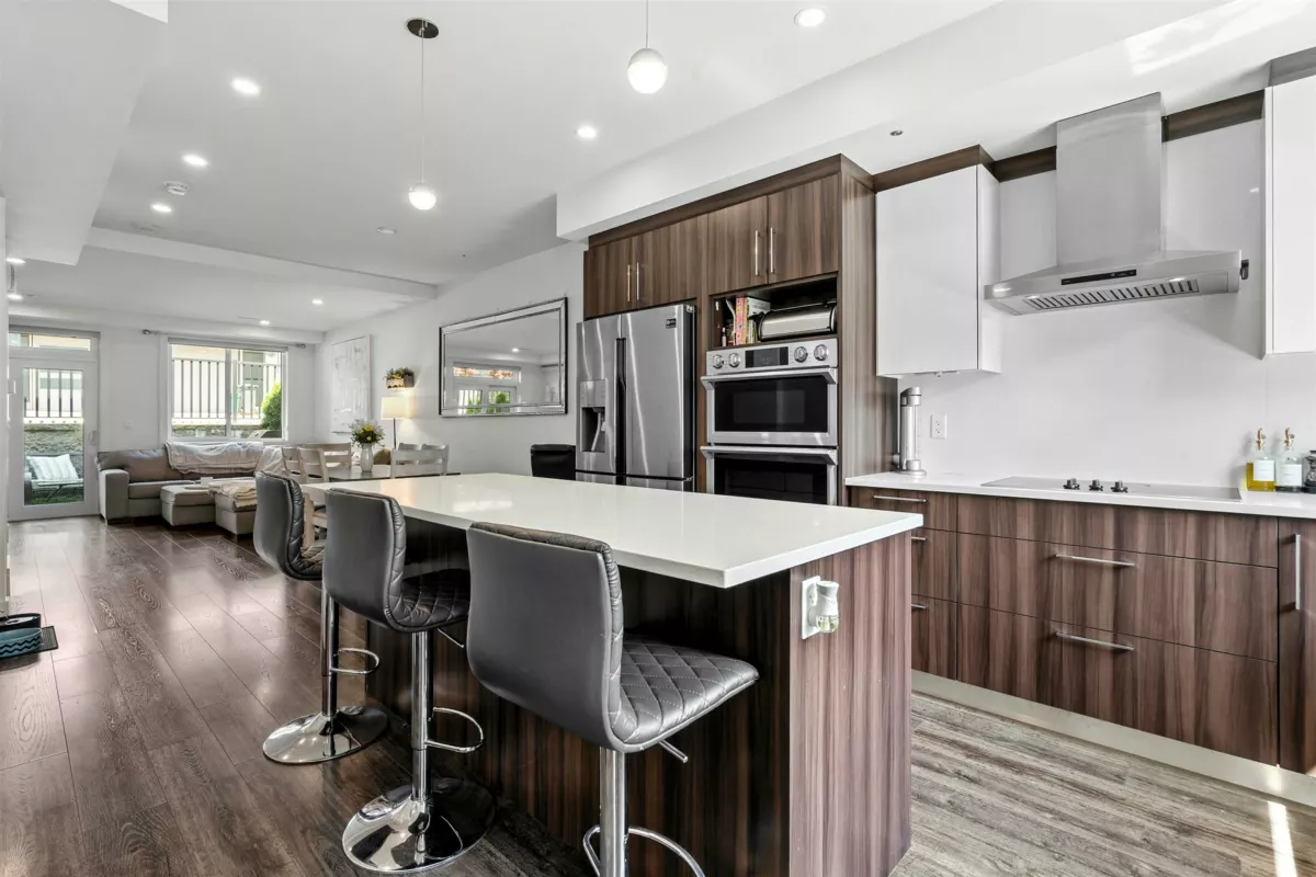Welcome to Breeze in East Abbotsford - a rare blend of style, comfort, and privacy. This 1,450 sqft townhome offers 2 bedrooms, 3 bathrooms, and backs onto green space for a peaceful backyard escape. The open-concept main floor features 9ft ceilings, oversized windows, and LED lighting that fills the space with natural light. The kitchen is equipped with stainless-steel appliances, ample storage, and a large island for hosting or everyday living. Enjoy year-round comfort with geo-thermal heating and cooling, an environmentally friendly system that’s highly energy-efficient and cost-effective, helping you save on utilities while reducing your carbon footprint! Tucked into a quiet, well-kept complex with quick access to Hwy 1, shopping, parks, and schools.