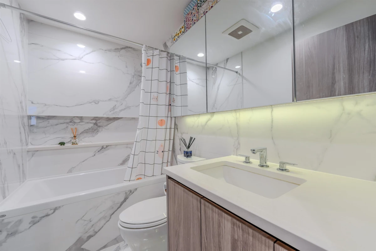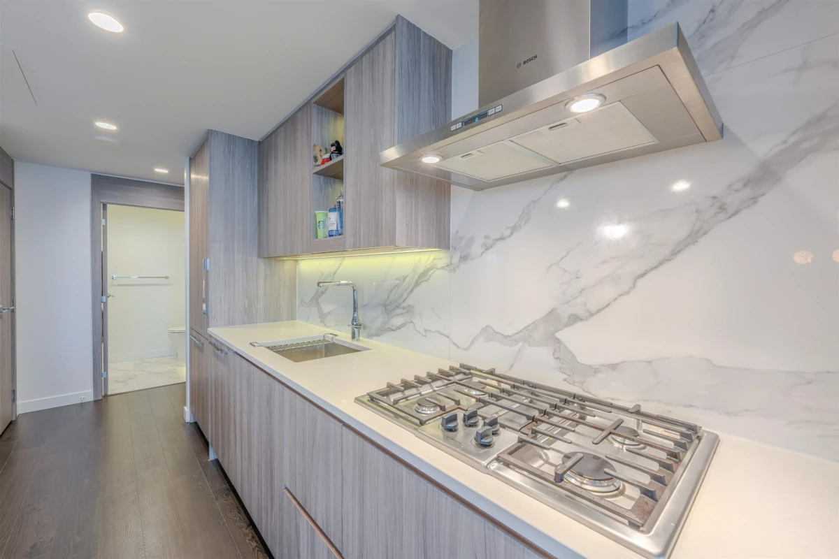 The most desirable south-east corner 2 bed/ 2 bath suite at Hillside East at Concord Brentwood, filling with great natural light and open wide city and mountain views. Impressive 505 sqft wraparound balcony, complete with built-in ceiling heater is perfect for enjoying outdoor living and entertaining throughout the year. Open-concept layout showcases contemporary finishes, quality European appliances, and a seamless flow between the kitchen, dining and living areas. AC with smart control system. 1 EV parking and 1 locker included. Comprehensive selection of amenities, including a state of the art fitness centre, music and media rooms, a welcoming lounge, and expansive outdoor spaces designed for relaxation. 2-5-10 home warranty. Steps to Skytrain, Costco and Brentwood shopping centre.