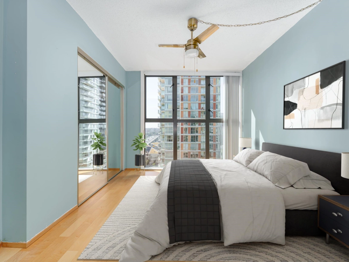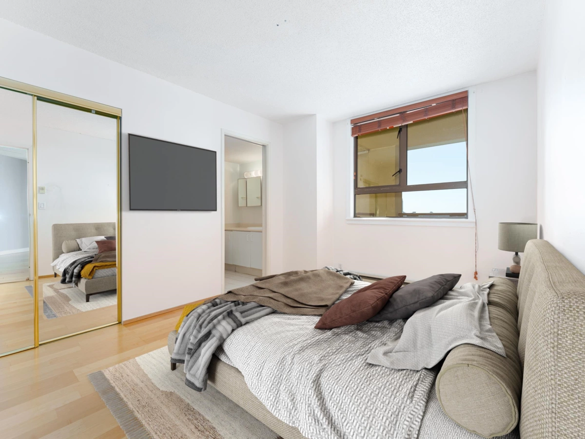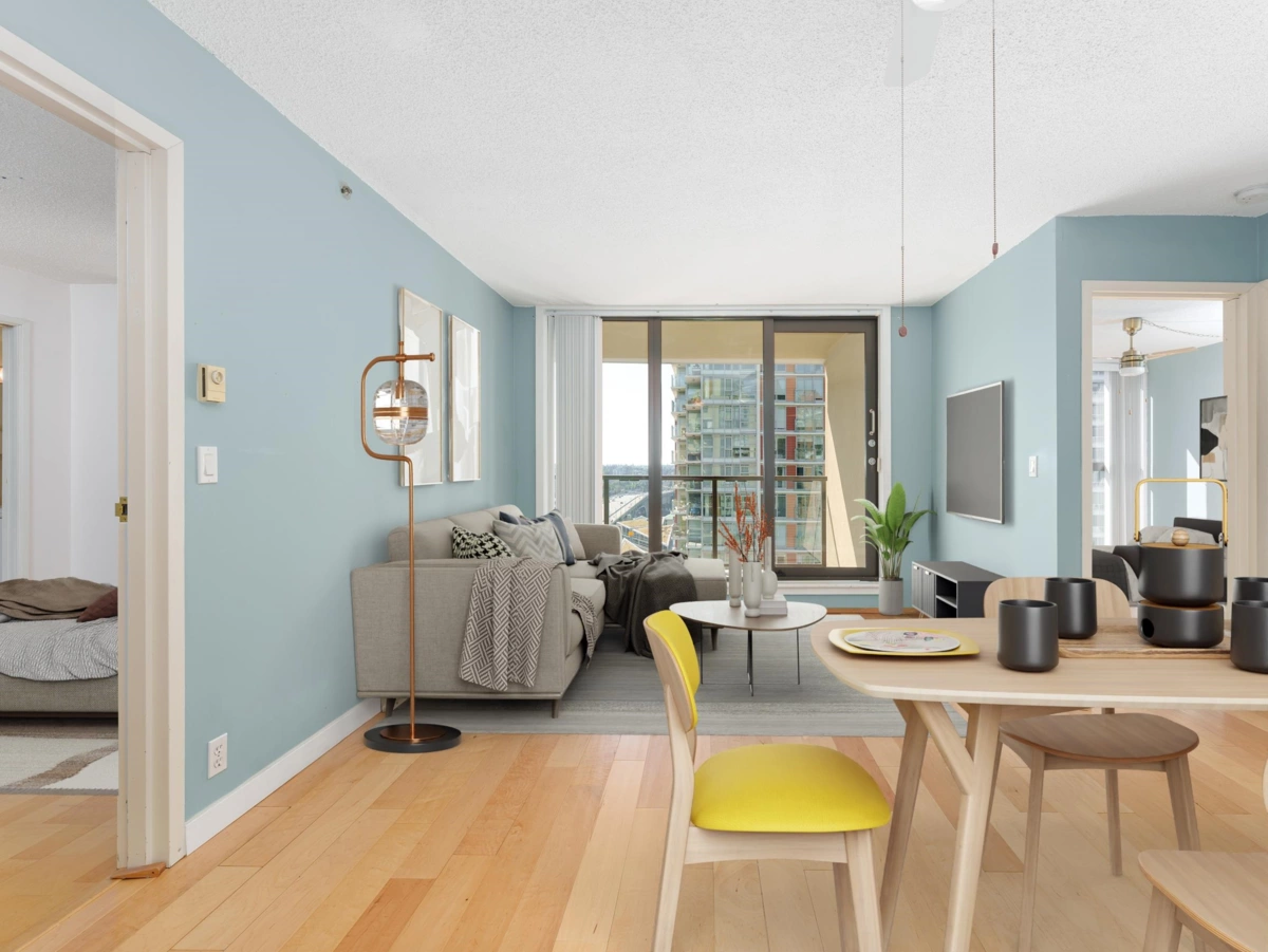 Best-priced 2-bedroom, 2-bath in the Century Tower in the heart of downtown Vancouver! Enjoy city views and a layout ready for your personal touch. Bring your decorating ideas and make it shine. Step onto your private patio to savour morning coffee or unwind with a glass of wine as the city hums below. Perfect for first-time buyers or a smart investment opportunity. Unbeatable location—close to transit, shopping, dining, and the entertainment district. Don’t miss out—book your private viewing today! Some pictures are virtually staged.