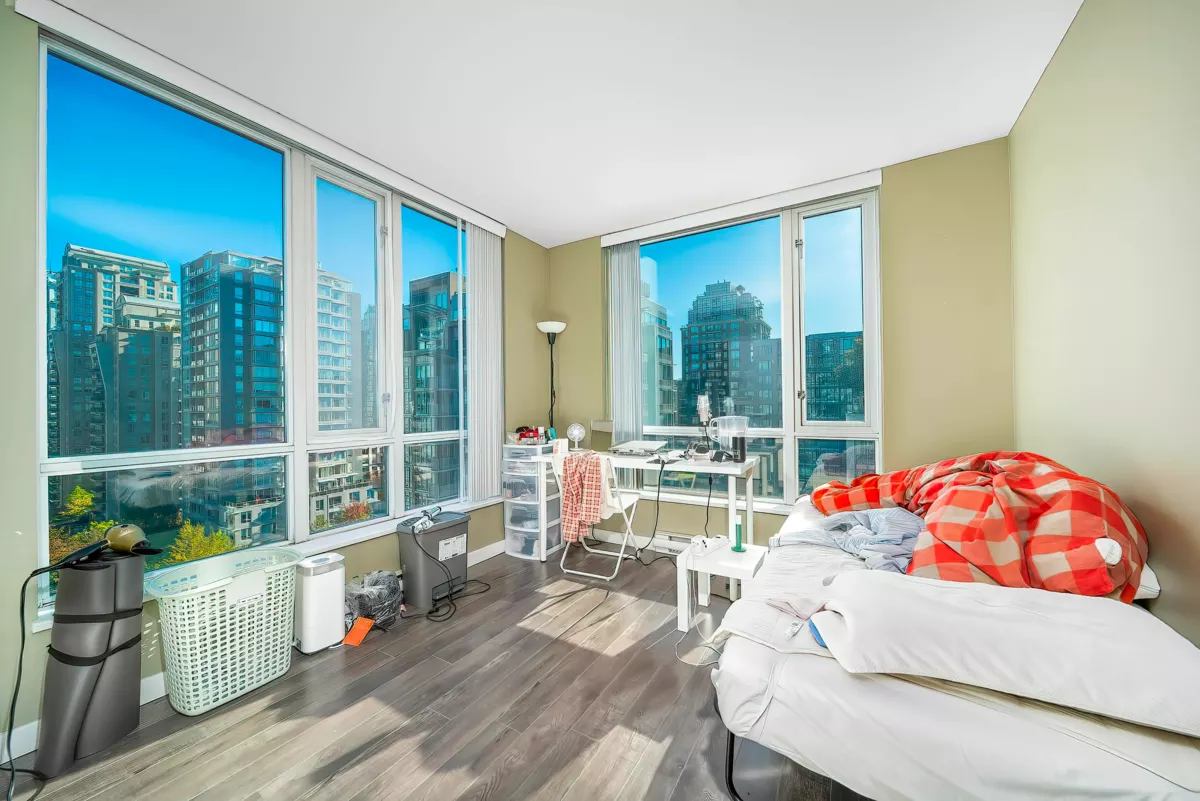 This spacious 700+ sqft high-rise condo features 1 bedroom plus a den and a separate office. The smartly designed southeast corner unit maximizes every inch with zero wasted space, and ceiling to floor windowns flooded with abundant natural light. Located in the very heart of downtown, you're just 4-5 minutes from Yaletown, BC Place, Emery Barnes Park, and the SkyTrain station. The building offers 24/7 concierge, a fitness center, and a party lounge. With its prime location and affordable price, this unit presents a perfect opportunity for both investors and owner-occupiers. Call/text for showing.