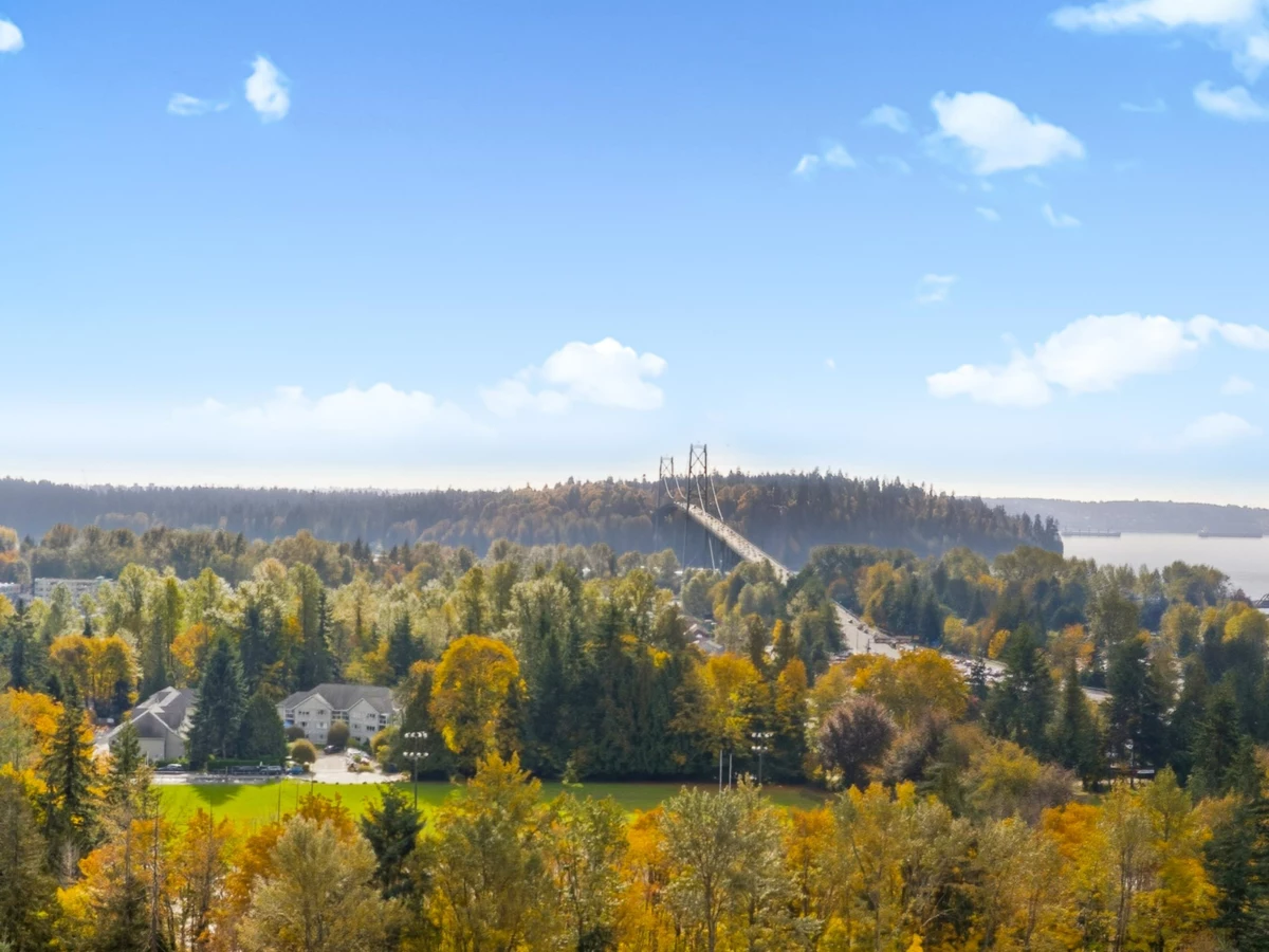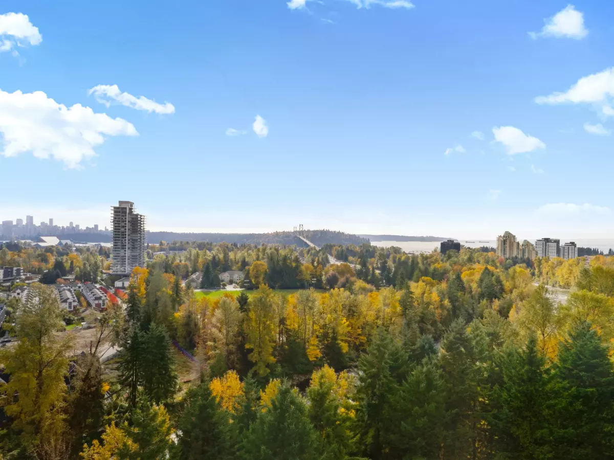 Amazing panoramic views of the ocean, Lions Gate Bridge, downtown Vancouver, and the North Shore mountains from the highly sought after southeast corner of the iconic Capilano Building, a true rare gem. This renovated, spacious, and bright home not only offers breathtaking views but also features a functional floor plan, new appliances, and a beautifully updated designer kitchen. Enjoy two generous bedrooms and a den, a massive wrap around balcony perfect for taking in both sunrise and sunset. Residents enjoy amenities including an indoor pool, hot tub, exercise room, games room, and more. Easy access to Downtown, Park Royal, and Grouse Mountain.