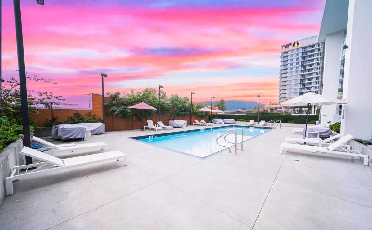 Lougheed Heights - Marquee by BOSA BLUESKY Properties, This 1 bed + DEN EAST facing unit features 1 PARKING & 1 LOCKER with panorama view including mountain and city views. Amenities including outdoor swimming pool, deck with relaxing loungers, outdoor barbecue terrace, social lounge, fitness room etc. Minutes to skytrain station, Safeway, save on food, lougheed town center, restaurants etc.