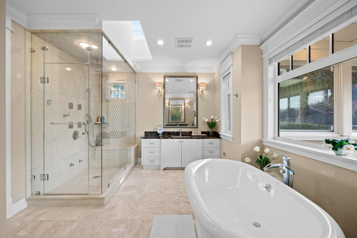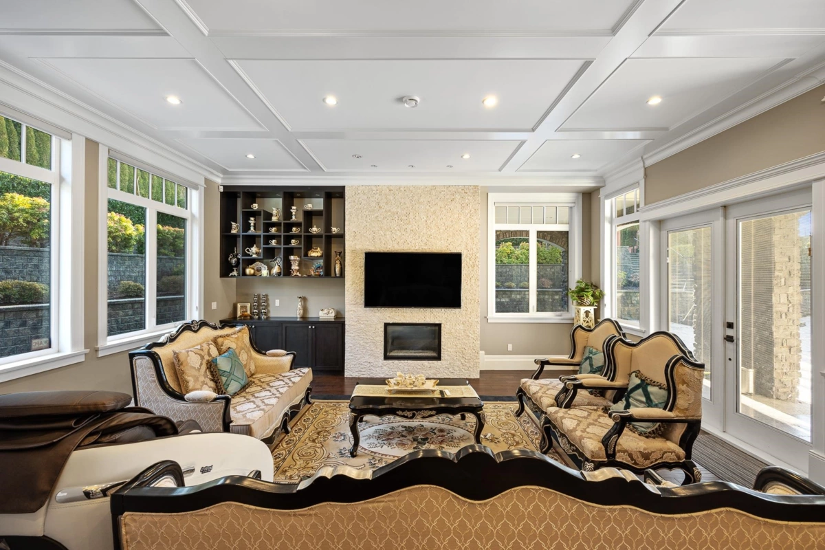 Amazing View! Great location! A stunning private gated 9,271 sqft estate sitting on a 31,624 sqft lot offering spacious high ceilings, 9 bdrms, 8 baths & entertainment sized living & dining rm w/gorgeous scenery. Master bdrm w/380 sqft covered balcony facing private yard. Features library, wok kitchen, media rm, solar, attic, sauna, winery, games, recreation rm & BBQ w/wood FP. Home security includes surveillance cameras & covered by home warranty insurance. Enjoy a garden pavilion, big veranda & beautiful panorama of North Shore mtns! Nearby South Surrey Downtown; Grandview Corners shopping ctr, Walmart...walking distance to Southridge Private School & Sunnyside Elem. School. Mortgage helper unit is ready if you need, more surprises when you visit the lovely house,Must See!