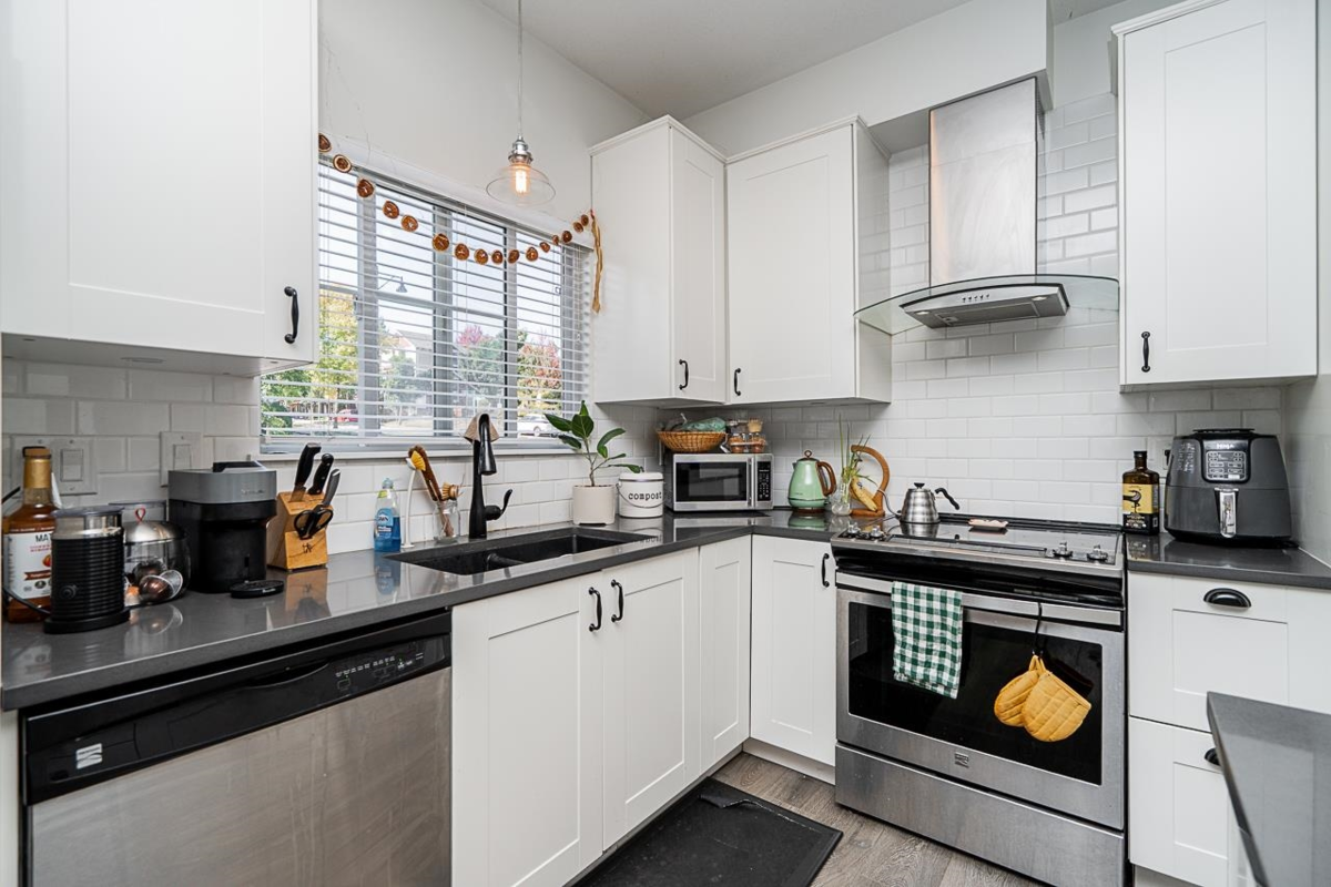 West Cloverdale 3-level, 2,516 sq.ft. half duplex on a large corner lot! This home offers an incredible blend of modern design and functional living space. Featuring 3 bedrooms, 4 bathrooms, and lovely finishes throughout, it’s the perfect family home! Updated wide-plank flooring that flows seamlessly throughout the main living areas. The open-concept floor plan is flooded with natural light and ideal for both family gatherings and entertaining with an updated kitchen with white shaker cabinetry and new countertops. The large rec room in the basement includes a wet bar, wine fridge and sink plus separate entrance offering suite potential for added flexibility. Bonus 3 private parking stalls and additional street parking and walking distance to schools, parks, coffee shop and bus route.