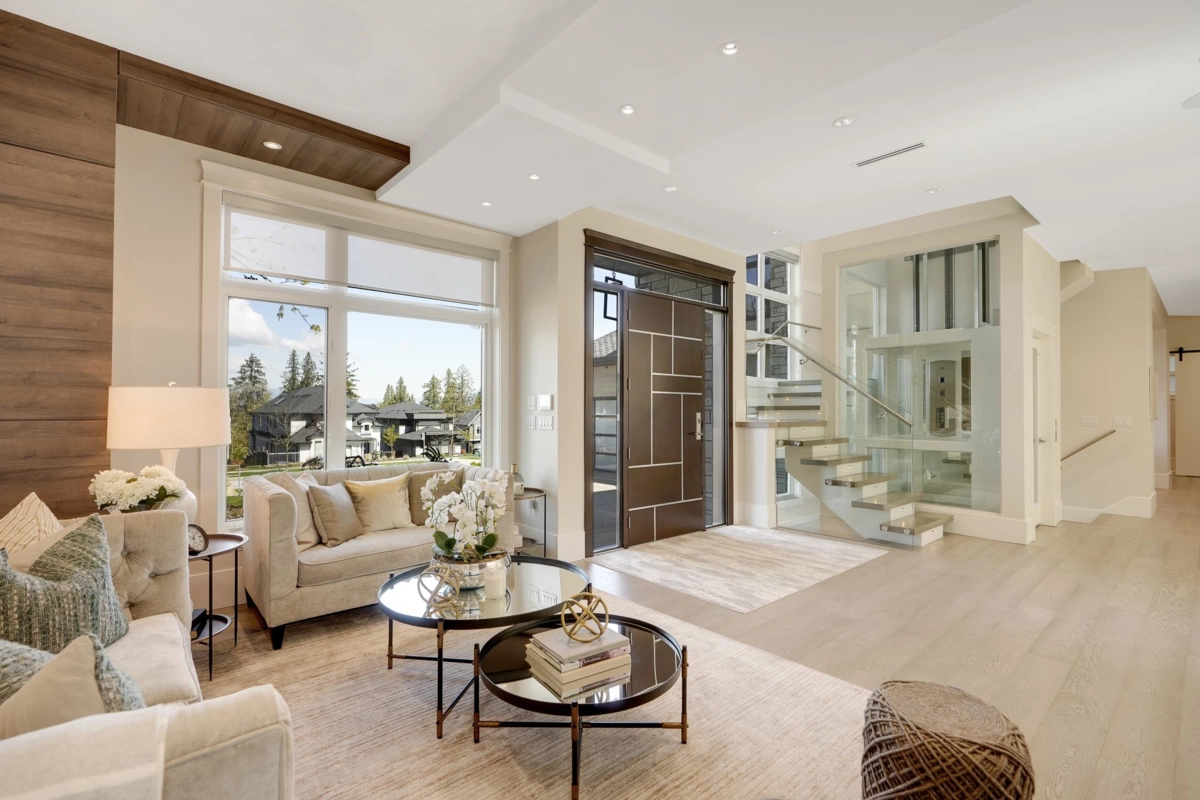 This outstanding world class contemporary Mansion is custom built with the best materials, unbeatable workmanship & pride. This 6500 sqft home sits on a 14000 sqft lot built to be the BEST of all in 63 beautifully crafted homes in April Creek! It features a covered patio equipped w/gas fireplace & sound system. 3 car fully insulated garage, two vaulted ceiling master, 20 feet ceilings, entertaining bar, formal media room, yoga room, glass Elevator, European made 3-way glass fireplace, top of the line appliances Subzero, Wolf, Miele, Butler pantry w/wine cooler/tower, Lauzon Flooring & much much more. Best location in South Surrey. Only a few minutes from the new Aquatic Center, prestigious South-ridge Private School, Grandview Corners Shopping Center, Morgan Creek Golf Course and highway.