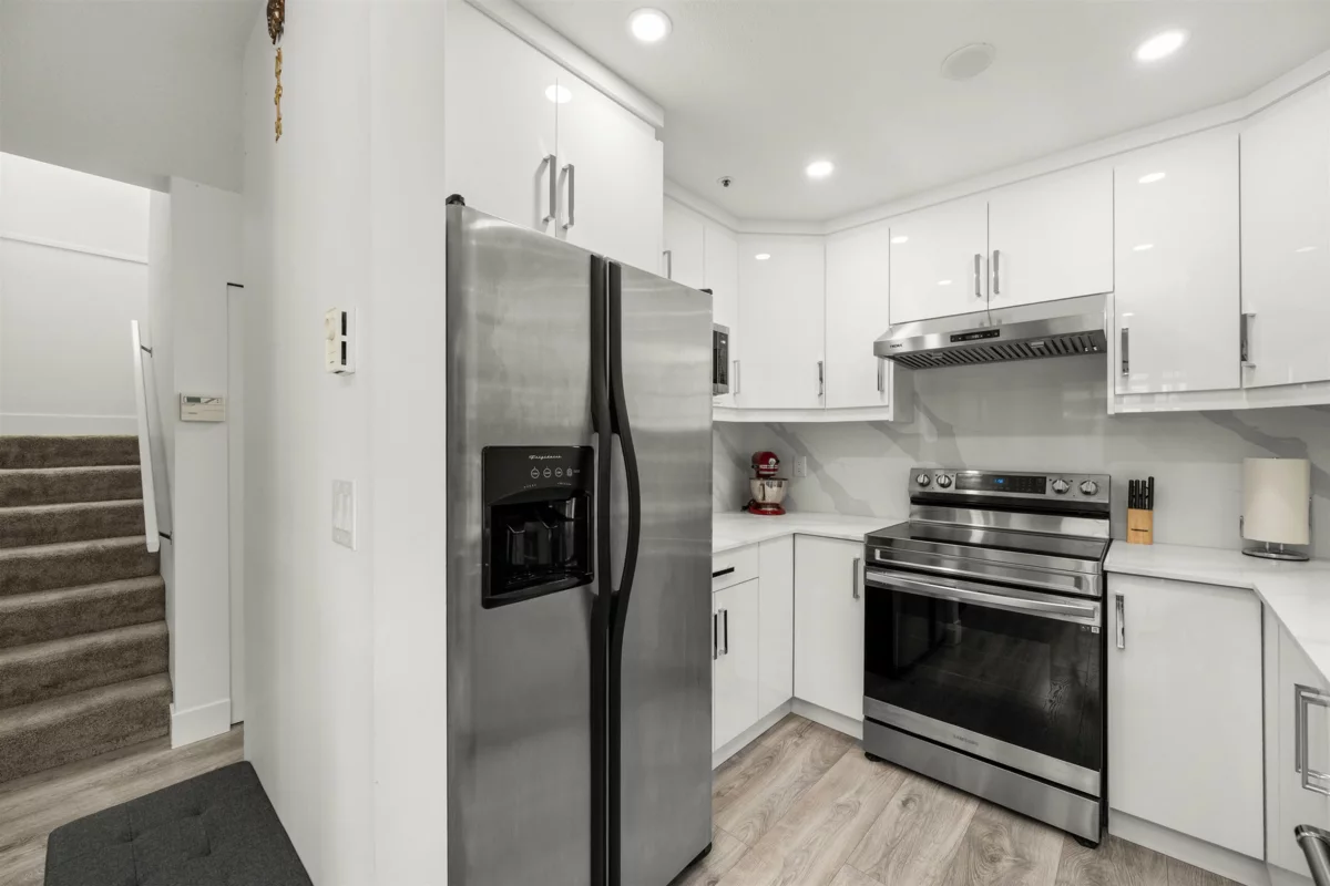 Welcome to Waterford Place where your BEAUTIFULLY UPDATED, 3 bedroom, 3 bath, coveted two storey BRIGHT CORNER UNIT awaits! The spacious main floor boasts a NEW KITCHEN with S/S appliances, quartz countertops, potlights, a custom living room feature wall, gas f/p, powder room, sizeable dining rm & access to your UPDATED FENCED YARD with turf for easy care! Upstairs you will find 3 GOOD SIZED bedrooms with 2 FULL bathrooms, plus laundry room w/ NEW appliances. Your primary bdrm features a walk-in closet w/ custom organizer, modern barn door and FULLY RENOVATED full bath! Excellent Pitt Meadows location, with restaurants, shopping, schools, WCE transportation and entertainment at your doorstep. This beauty is ready to move in and ENJOY!