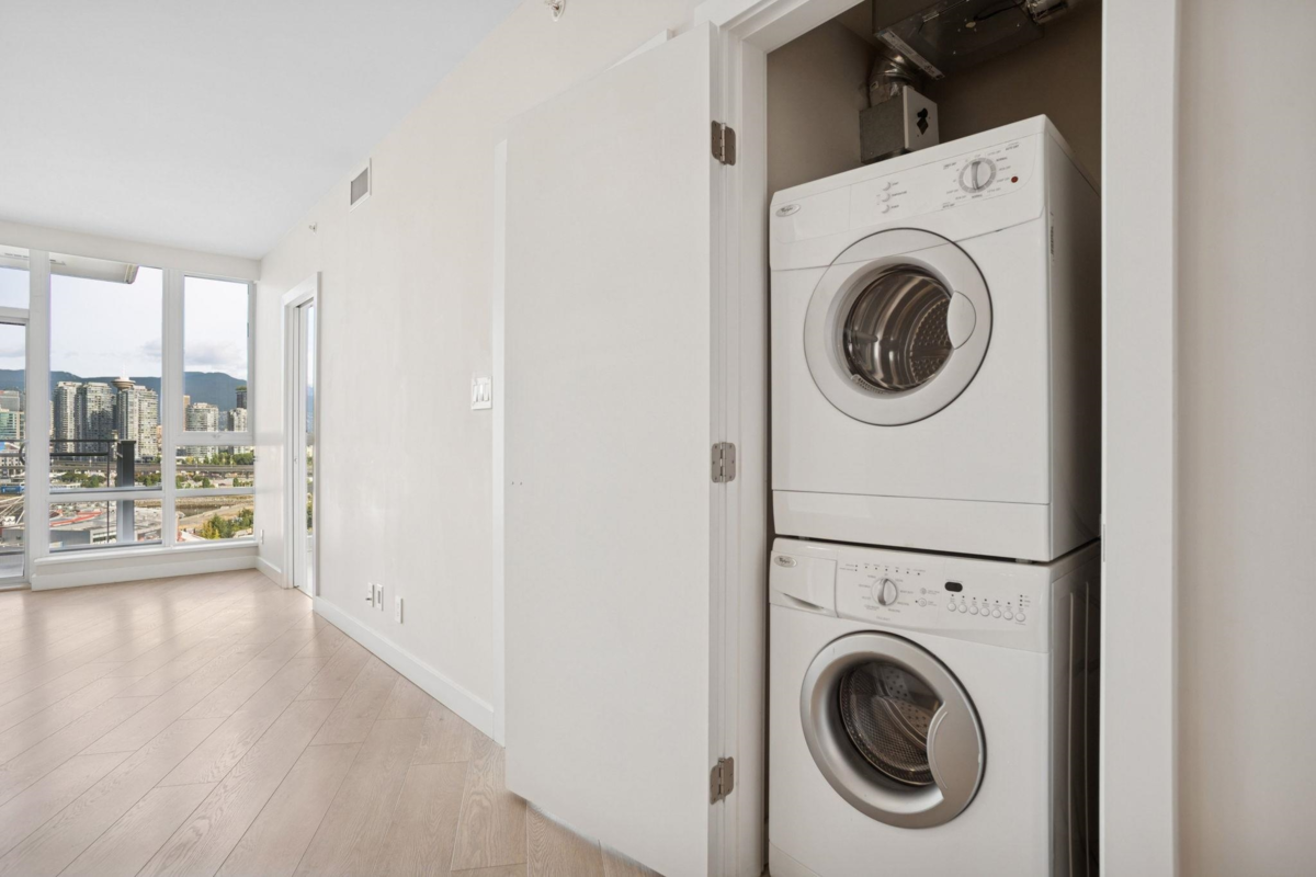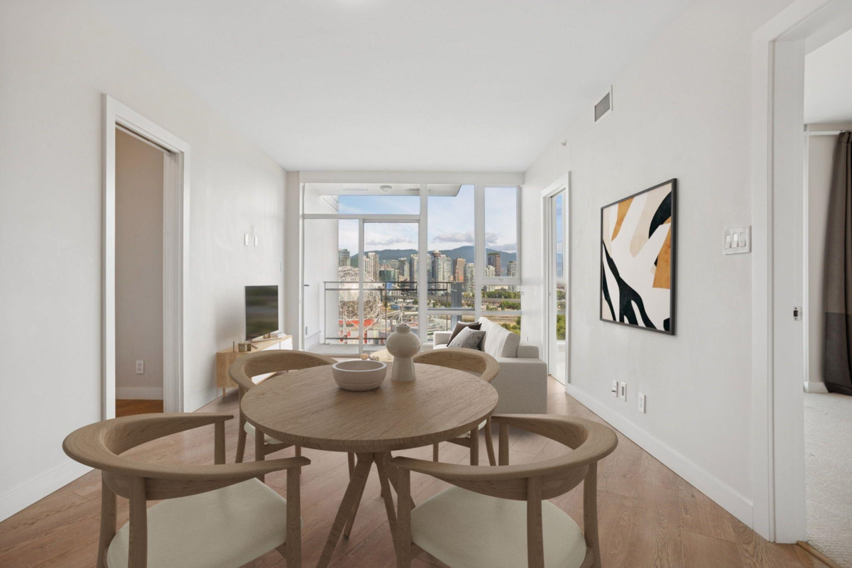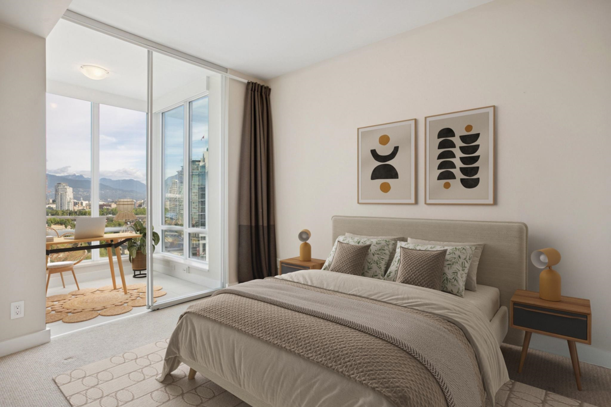 WELCOME TO CENTRAL BY ONNI - Do not miss this rarely available and coveted 1 BED + SOLARIUM + 2 DENS floor plan with the most efficient lay out: spacious living/dining area, fresh designer paint, a gourmet chef's kitchen with quartz countertops and S/S Jenn-air appliances, air conditioning, huge windows + huge views. Enjoy panoramic views of False Creek, the North Shore Mountains, and the glittering Vancouver Skyline from your private waterfront balcony. Building amenities include: Visitors Parking, Full-Time Concierge, Rooftop terrace w/ communal plots, lounge, movie theatre, fully equipped gym, yoga & dance studio + bike room. Home complete with 1 parking, 1 storage. This is more than a home—it’s a lifestyle statement in one of Vancouver’s best neighbourhoods. OH: Sun Nov 9, 2-4pm.