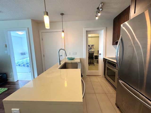 The Beasley. This true gem sits on the south west side and has beautiful south city views through your bedroom and solarium. Hardwood thru-out, with heated and enclosed solarium that can be used as an office or den. Large in suite storage/ln-suite Laundry. Floor to ceiling windows for maximum light on the best side. Heated floors in bathroom, S/S appliances in kitchen w/ full size fridge and stone countertops. Full service concierge for maximum security & well appointed fitness facility/party room & 8th floor Dog Park Amenity Terrace w/ Ent Lounge. Bonus 1 storage locker and parking spot. Freshly painted, Move in ready!. Open House Nov 29, 2025 2:00 - 4:00pm