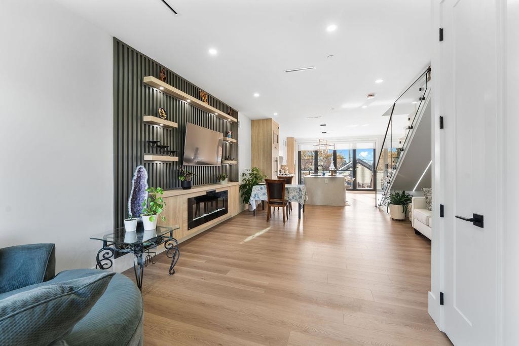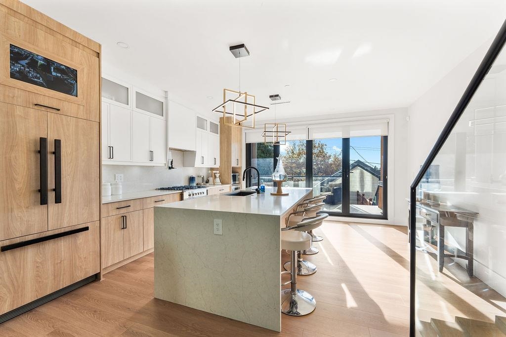 Stunning new Half Duplex with a South facing backyard Boasting modern design and high end finishing. This half duplex features 3 bedrooms upstairs and 2.5 bathrooms with an additional one bedroom one bathroom legal suite. 1842 sqft living area, plus 152 sqft patio, huge 269 sqft crawl space. Luxury finishes include wood accent panel walls, waterfall kitchen island, Fisher Paykel appliances, glass railings, control 4 automation for lights, arch windows, bi-folding doors that lead to a private patio space. This includes a fenced backyard to enjoy sunsets & outdoor living with a beautiful view. Comes with a single car garage and additional open space for parking. 2-5-10 year Warranty. QUICK COMPLETION POSSIBLE. NO GST!!