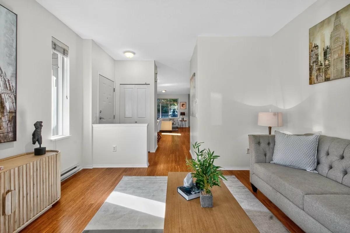 Feels like a detached home...Rare Duplex-Style Townhome in Chestnut Grove in Fleetwood! Freshly painted and beautifully presented, this end-unit features the primary bedroom on the main floor and a side-by-side double garage. Offering 4 bedrooms, 2.5 baths, and 1,750 sq ft of bright, functional living space, this move-in ready home combines comfort, convenience, and walkability. The private backyard is ideal for relaxing, entertaining, and spending time with family, friends or pets. Just steps to Fresh Street Market, restaurants, banks, and more. Close to great schools, transit, and the upcoming SkyTrain extension. Quietly tucked within a sought-after, well-maintained complex, this is one of the most desirable layouts in the community. No age restrictions.