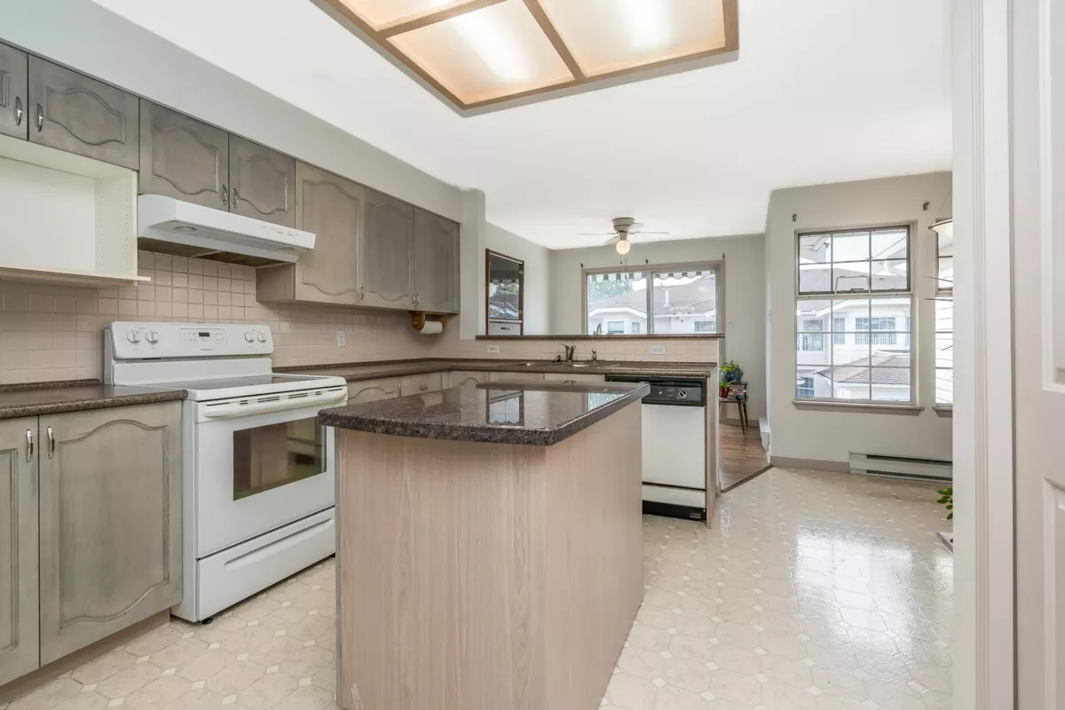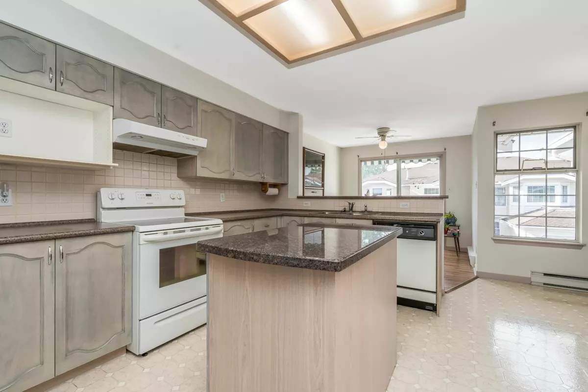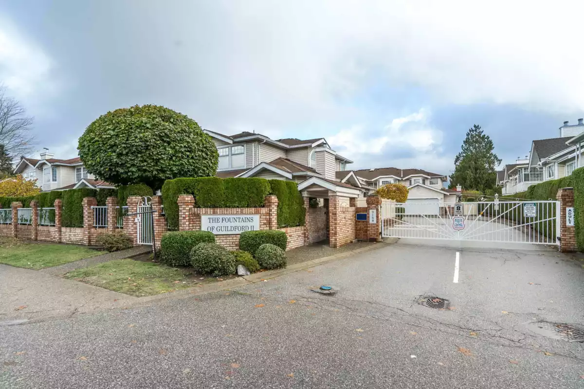 Welcome to the "THE FOUNTAINS" A beautifully maintained upper level townhouse offering over 1,400 sq of bright, spacious living in the heart of FLEETWOOD. this 2 bedroom,2 bath home features a large oak kitchen with newer countertops and ample cabinetry, a cozy family room opening to a west facing balcony, and an elegant living/dining area with a gas fireplace. The expansive primary bedroom includes a generous ensuite.Enjoy a quiet, private setting with gated entry,just steps from shopping and the future Skytrain.