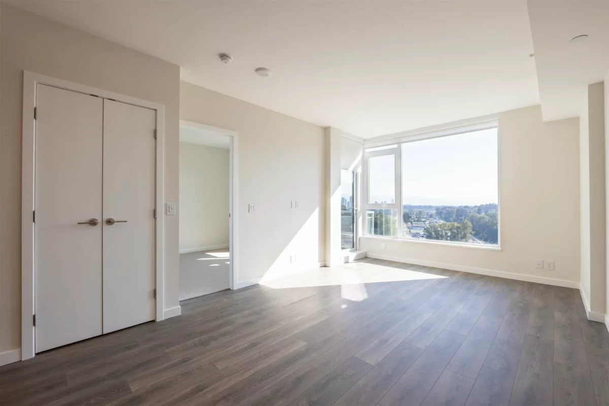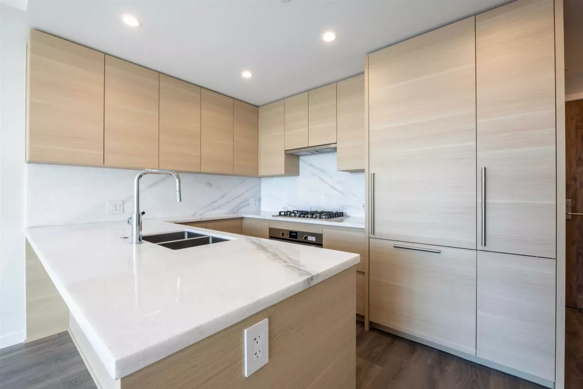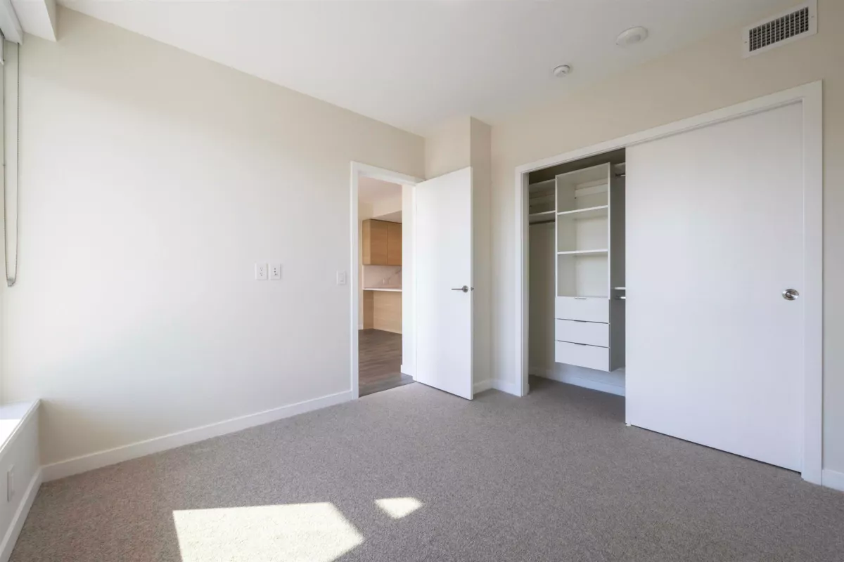 The Grande by Onni Group. Incredibly Jr. 2br floorplan w/ stunning views of mountain & city. Southeast facing. 9 ft high ceiling. 1 parking and 1 locker. Air conditioned, washroom with radiant heat, low maintenance fee. 2-5-10 warranty. Gas stove, North east facing. Amenities: outdoor pool, sauna/steam, kids playroom, movie theatre, golf simulator, community gardens, & dryclean service. Shopping center close by SkyTrain station steps away.