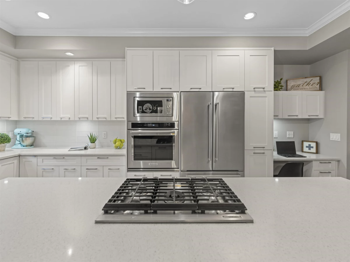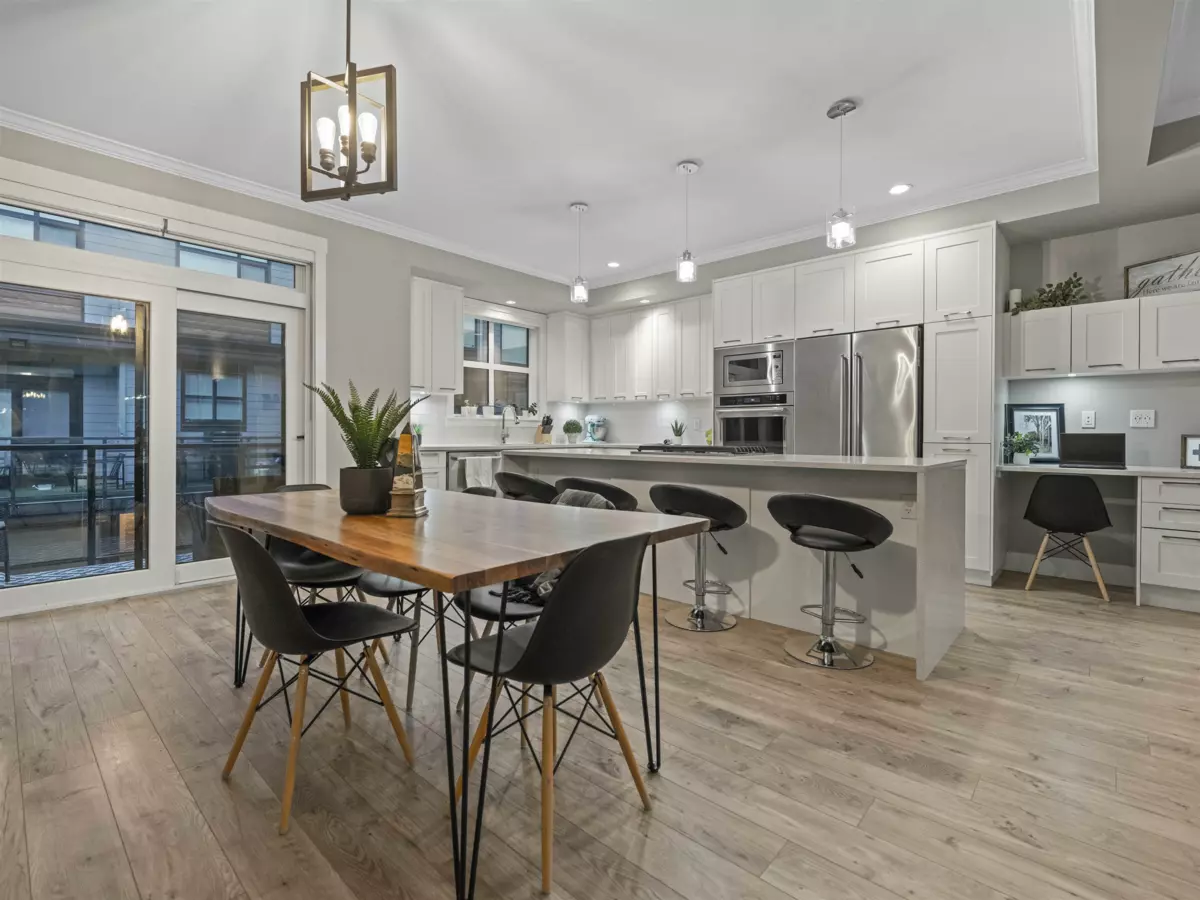Discover this meticulously maintained, 1600+ sqft townhome in desirable West Cloverdale. This spacious home features 3 bedrooms plus a large den, perfect for a growing family or home office. The bright, open-concept design is flooded with tons of natural light from large windows. You'll love the gourmet kitchen with its high-end KitchenAid appliances and large island. Step outside to your private fenced yard and large balcony ideal for kids, pets, and summer BBQs. Located just a 5-minute walk from AJ McLellan Elementary School and nestled beside the beautiful Bose Forest Park, this home offers the perfect blend of convenience and tranquility. It's not just a home; it's a lifestyle. Don't miss out!