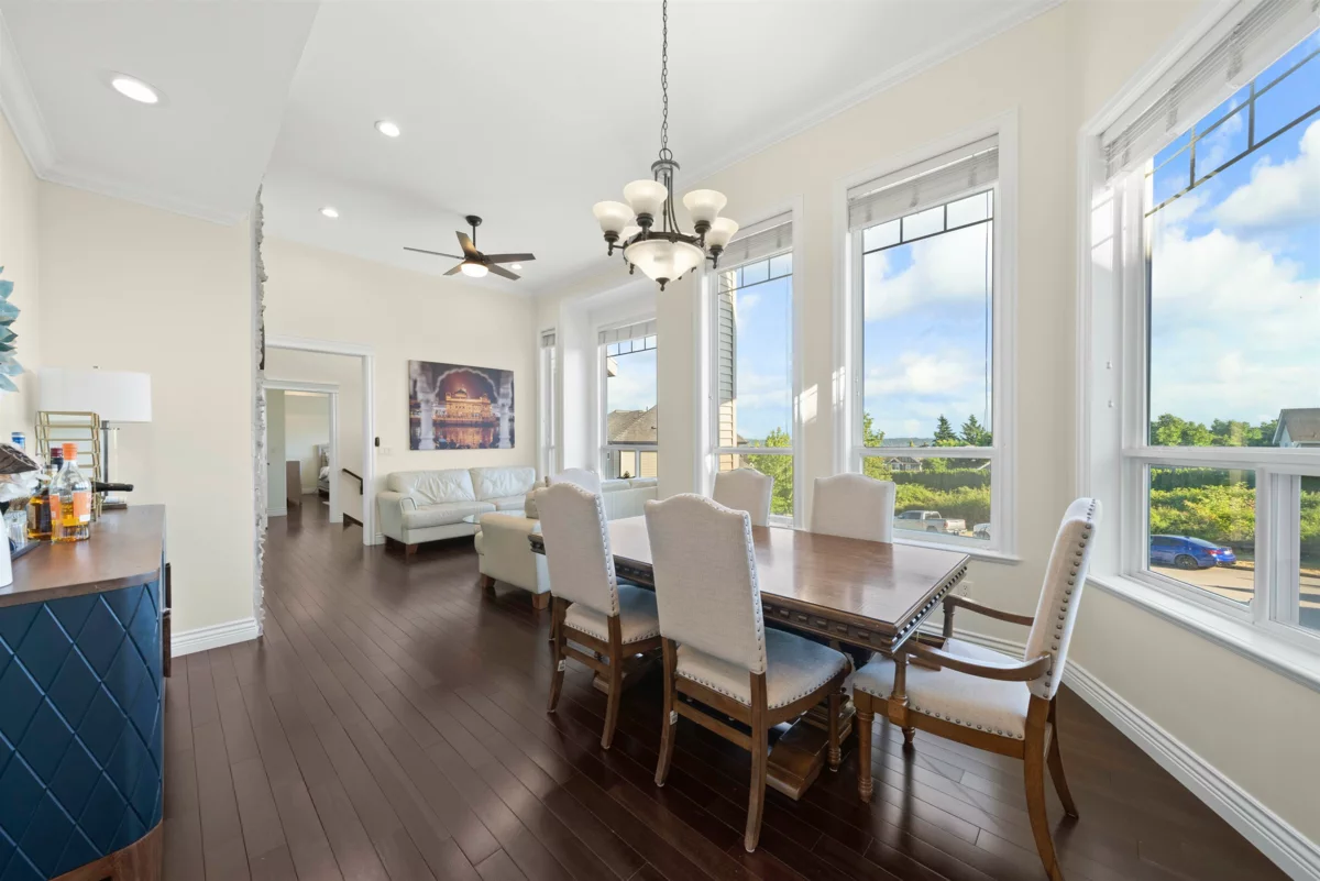 Stunning CUSTOM-BUILT two storey w/bsmt home, nestled on a quiet cul-de-sac in peaceful Willoughby Heights, ideal for families. Nearly 3,800 sq. ft. with 7 bedrooms, including 2 masters (one on main), and 7 bathrooms, plus a beautifully updated 2-bedroom mortgage helper with private entrance. Enjoy breathtaking Mount Baker views from different vantage points. Inside, soaring ceilings, hardwood floors & a double-sided gas fireplace that warms the open layout. The chef’s kitchen features cream cabinetry, granite counters, large island, stainless steel appliances, tile backsplash, and backyard access. Outside, an expansive deck with lounge, covered gazebo, dining area, storage shed, and large windows fill the home with natural light. Close to schools, parks, shopping, transit & more!