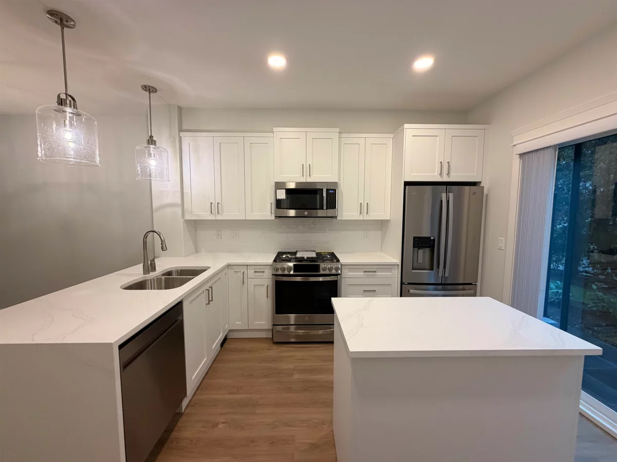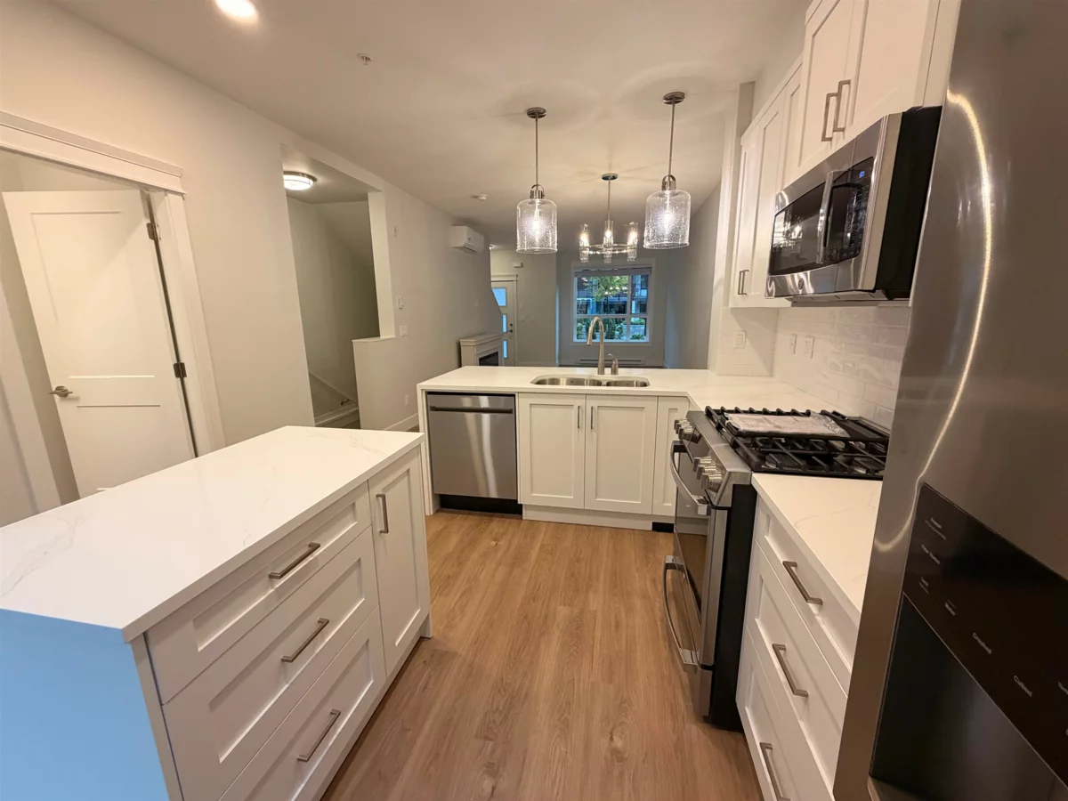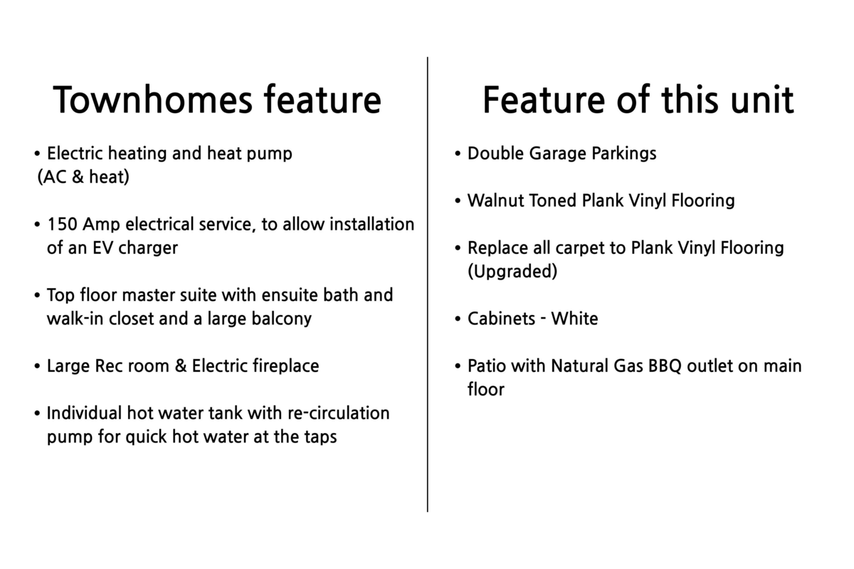Welcome to Kensington Gate by Quadra — a rare 4-level townhouse in the center of Willoughby. This spacious home offers over 2,000 sq.ft with 3 bedrooms, 3 bathrooms, a big rec room, and a flex space that can be used as a 4th bedroom. Located quietly at the back of the complex, it gives you both privacy and convenience. Inside features include wide laminate floors, heated bathroom floors, A/C with heat pump, and an electric fireplace. The large rec room is great for a gym, office, or guest room. You also get a private EV-ready garage with side-by-side underground parking and your own garage door. Just a 1-minute walk to Lynn Fripps Elementary. Close to bus stops, schools, shops, Highway 1, and Carvolth Bus Exchange. Surrounded by quiet single-family homes.