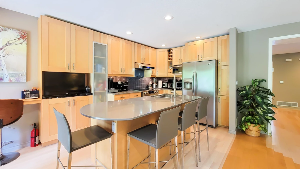 Welcome to Boulevard Green one of the largest unit with 2800 sf. This beautiful home boasts an expansive floor plan with 3 bedrooms upper and 3.5 bathrooms, providing ample space for family living and entertaining. Contemporary kitchen, featuring stainless steel appliances, custom cabinetry, quartz countertops, and a large island, ideal for casual gatherings. Bonus - a large Living Room with closet on main. Upper master ensuite with walk-in-closet has a big window overlooking golf course. Basement has a huge recreation room plus Full Bath. Roof and gutters were replaced in 2016. Hot water tank 2024. Step outside to your private backyard oasis, complete with a beautifully landscaped garden, a BBQ area with Golf course view! Close to public transit, schools, parks, golf courses.