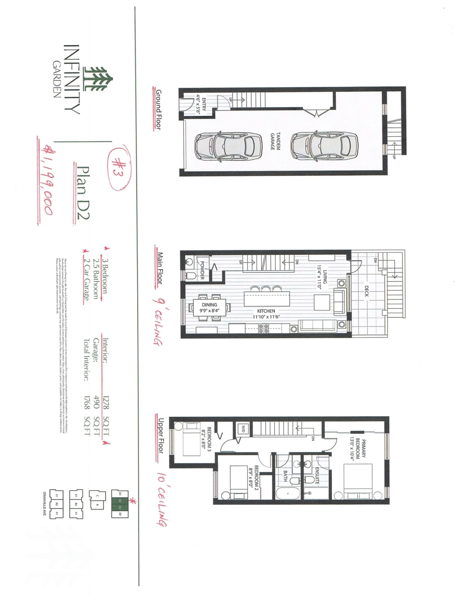 BONUS INCENTIVE upto $100,000 for first 4 homes SOLD. Experience Richmond living at INFINITY GARDEN, a boutique collection of just 12 townhomes designed for modern families. These brand-new 3 to 4 bedroom homes feature open-concept layouts, designer kitchens with premium appliances, contemporary bathrooms, and thoughtfully designed interiors. Featuring geothermal heating and cooling. 9' ceilings on main floor, 10' ceilings upstairs. 2-car EV-ready garage, private fenced yard, and generous main-floor sundeck, perfect for family living. City convenience with suburban tranquility, just steps from Garden City Park, top schools, Lansdowne Mall, and Canada Line. Ready for occupancy in August or September 2026. ONLY 5% DEPOSIT required until completion date.