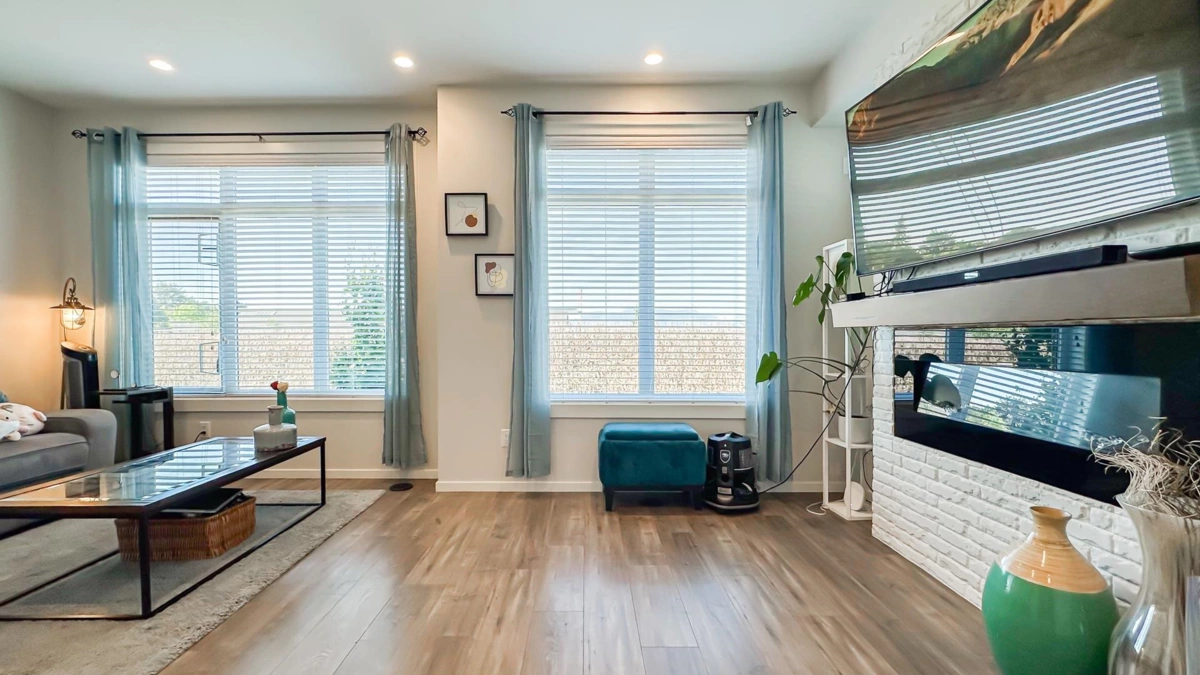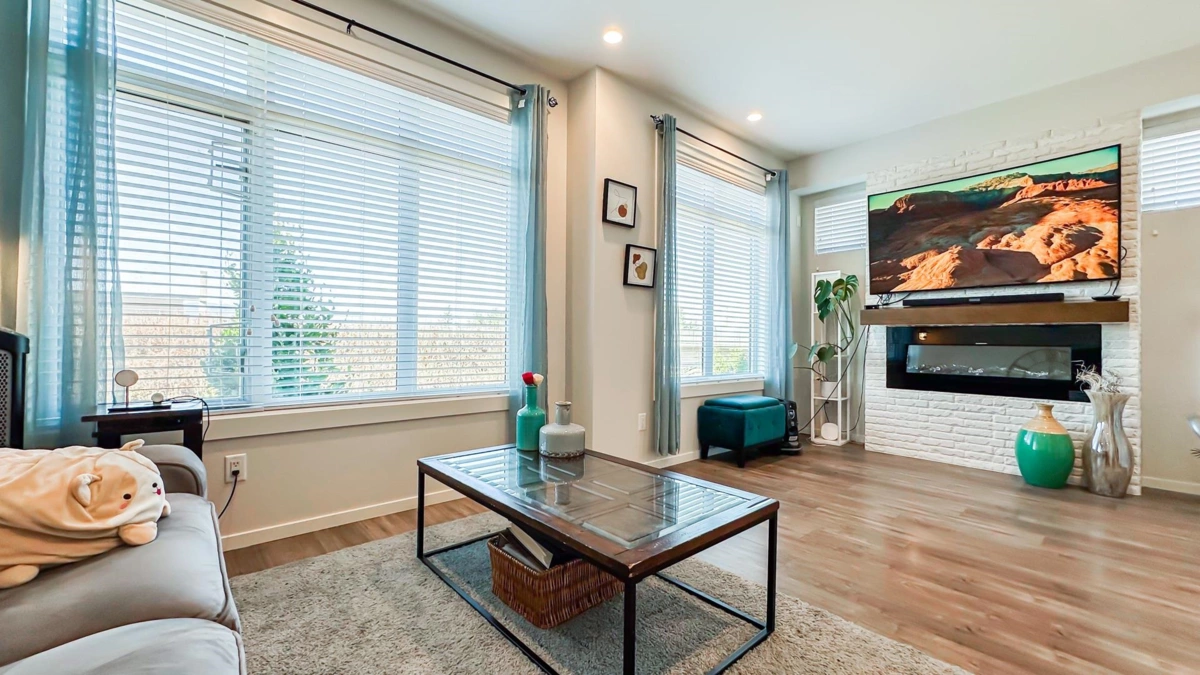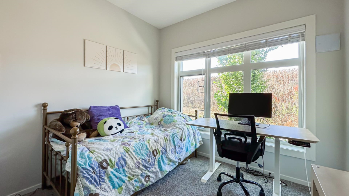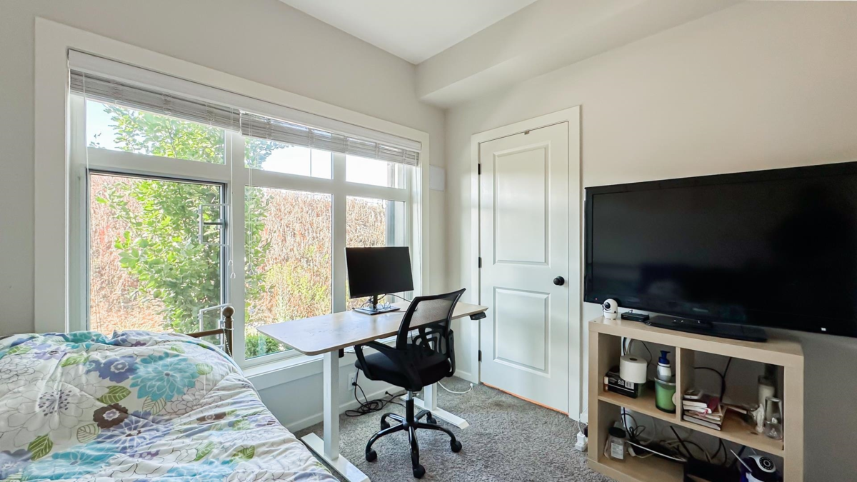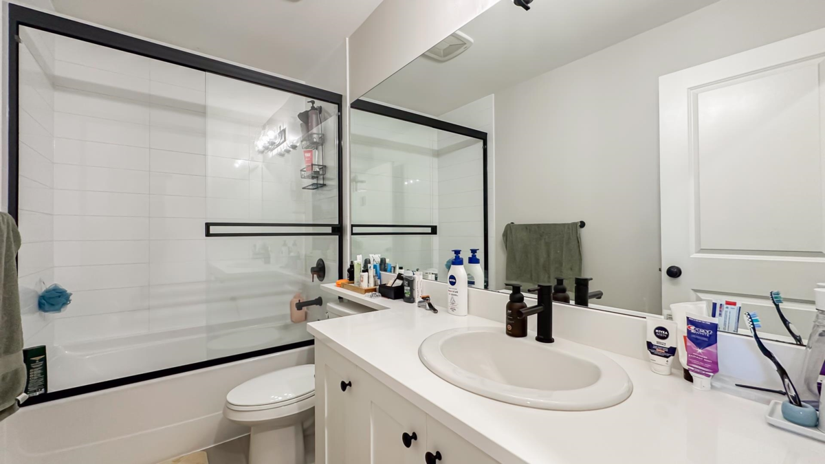 Corner unit! Modern 4 bed,4 bath Farmhouse-inspired design,almost 2,000 sqft of bright, modern living space.The main floor features open layout with 9' ceilings, oversized windows, & modern flr to ceiling white brick fplace. Kitchen is equipped w/ a large island, w-in pantry, quartz countertops, s/s appliances w/ soft close shaker style cabinets. The master bdrm has vaulted ceiling & chandelier + 2 gd sz bedrooms.Lower level has a 4th bdrm w/ ensuite full bath, storage room & mud room. Comfort features include a high-efficiency heat pump, on-demand hot water, Cen. A/C and spacious balcony with gas BBQ outlet.It has a side-by-side dbl car garage & 2 bikes storage w/ lots of extra storage space, EV ready! Snow capped mountain view in winter & the lavender fields in spring.Call now to view