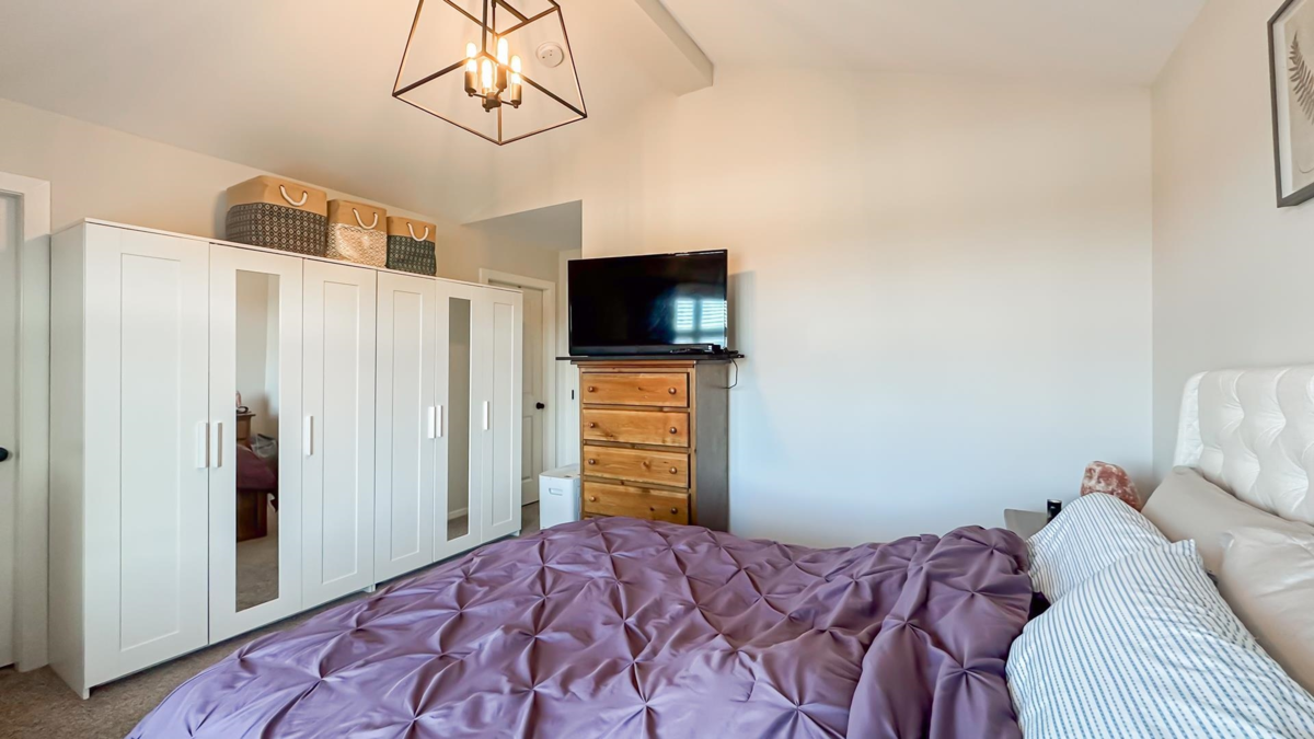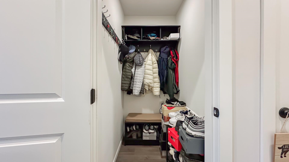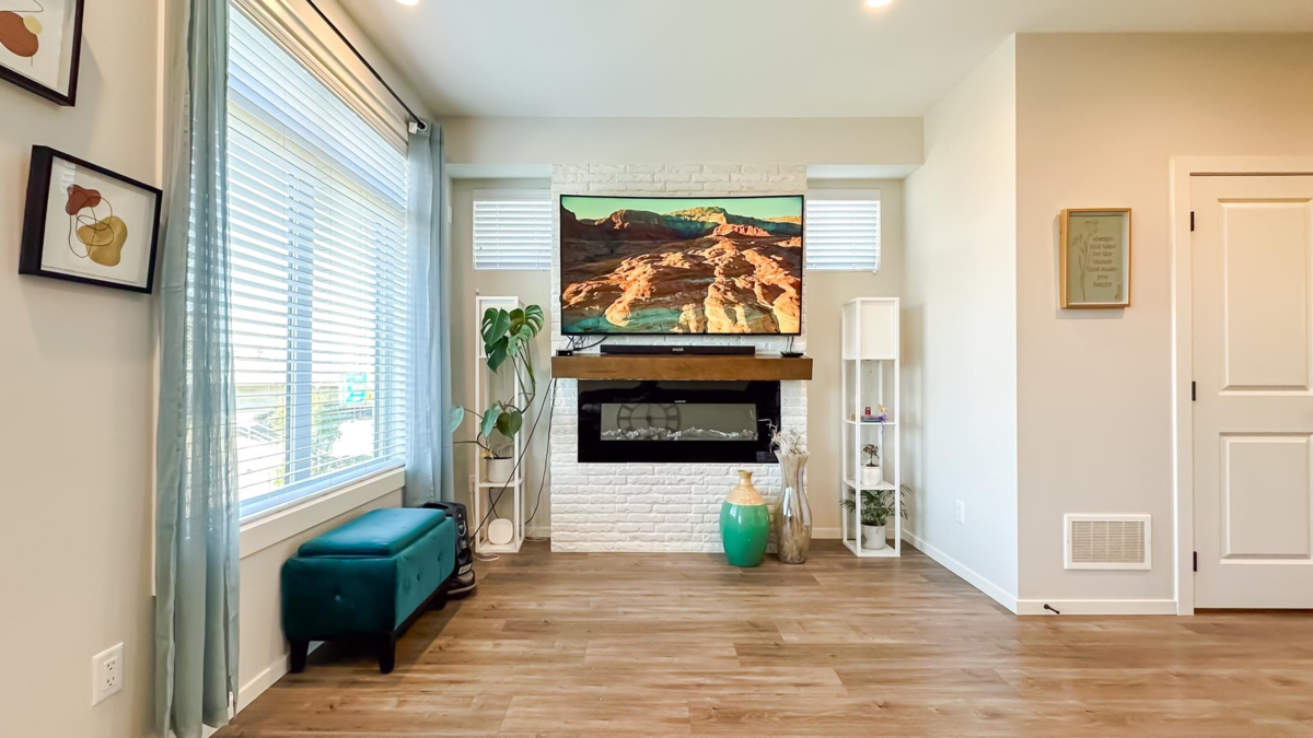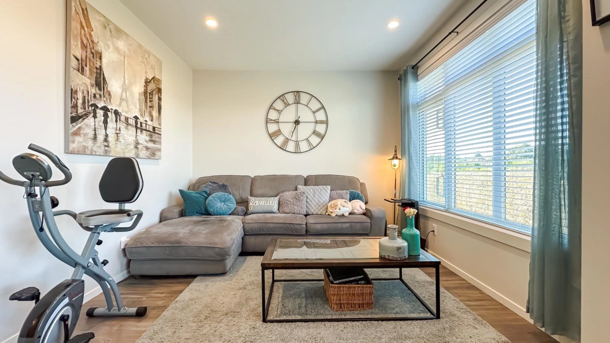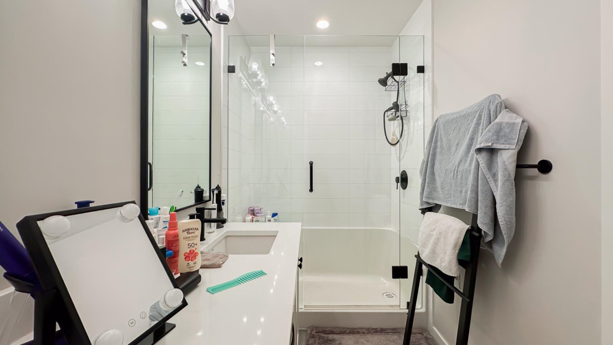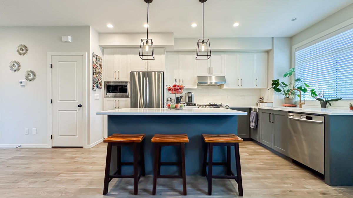 Corner unit! Modern 4 bed,4 bath Farmhouse-inspired design,almost 2,000 sqft of bright, modern living space.The main floor features open layout with 9' ceilings, oversized windows, & modern flr to ceiling white brick fplace. Kitchen is equipped w/ a large island, w-in pantry, quartz countertops, s/s appliances w/ soft close shaker style cabinets. The master bdrm has vaulted ceiling & chandelier + 2 gd sz bedrooms.Lower level has a 4th bdrm w/ ensuite full bath, storage room & mud room. Comfort features include a high-efficiency heat pump, on-demand hot water, Cen. A/C and spacious balcony with gas BBQ outlet.It has a side-by-side dbl car garage & 2 bikes storage w/ lots of extra storage space, EV ready! Snow capped mountain view in winter & the lavender fields in spring.Call now to view