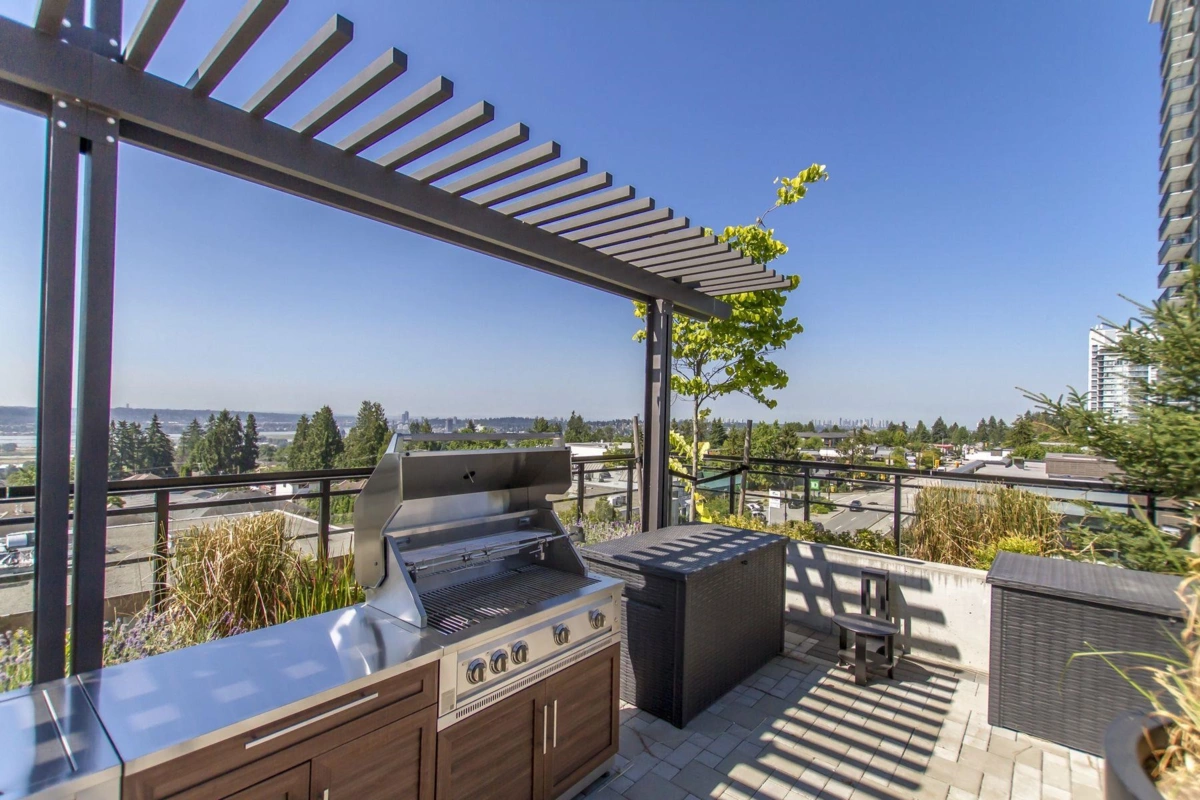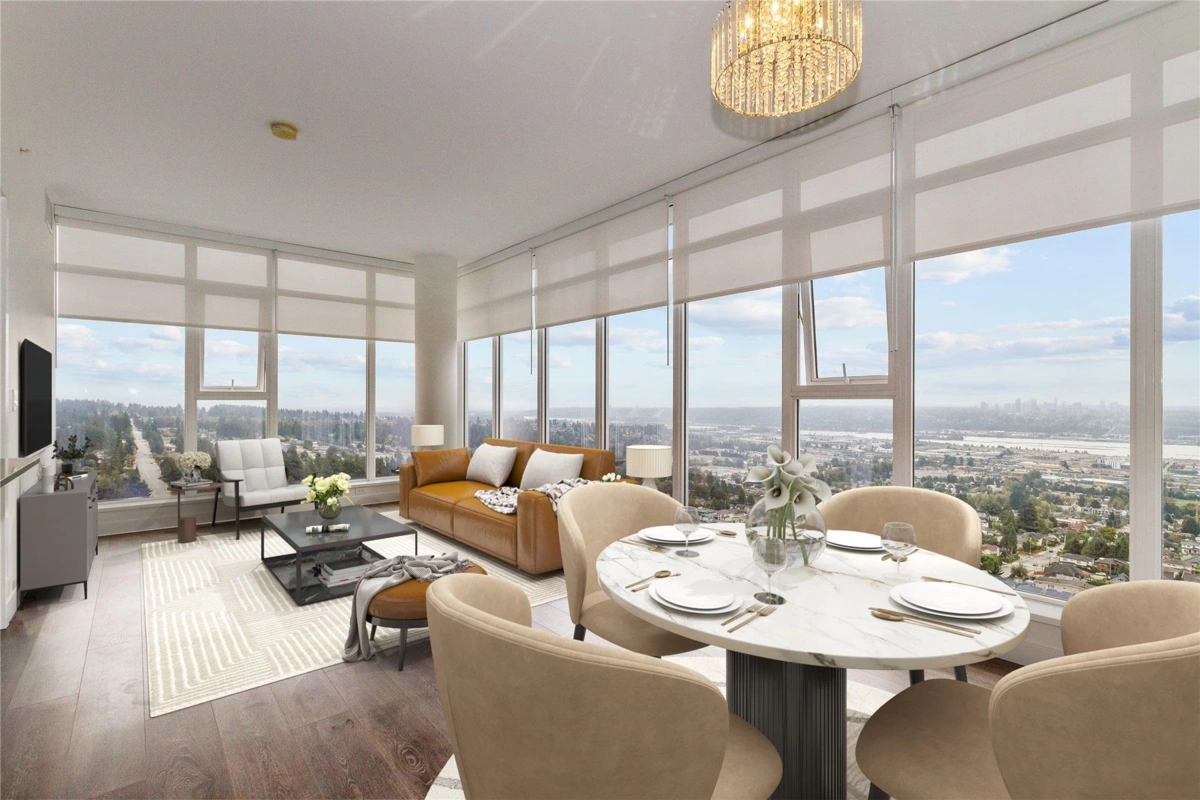 The Heights on Austin by Beedie, Experience elevated living in this stunning 2bed, 2bath home ( 948sqft) with PANORAMIC VIEW of the Fraser River, Mt Baker, and City skyline. featuring 9' ceilings, floor-to-ceiling windows, Air conditioning, this residence is filled with natural lisght and modern comfort. this gourmet kitchen boasts integrated appliances including a gas range and sleek cabinetry, while the spacious primary suite offers a double vanity, bathtub,and sepatrate shower for true relaxation Laminate flooring throughout adds style and durability. close to shopping, parks, schools, recreation & Hwy#1, concierge service, fitness centre, social lounge, dog wash space, outdoor terrace space, Live in convenience w/ Safeway downstairs. 1 EV parking+1 locker+bike storage.