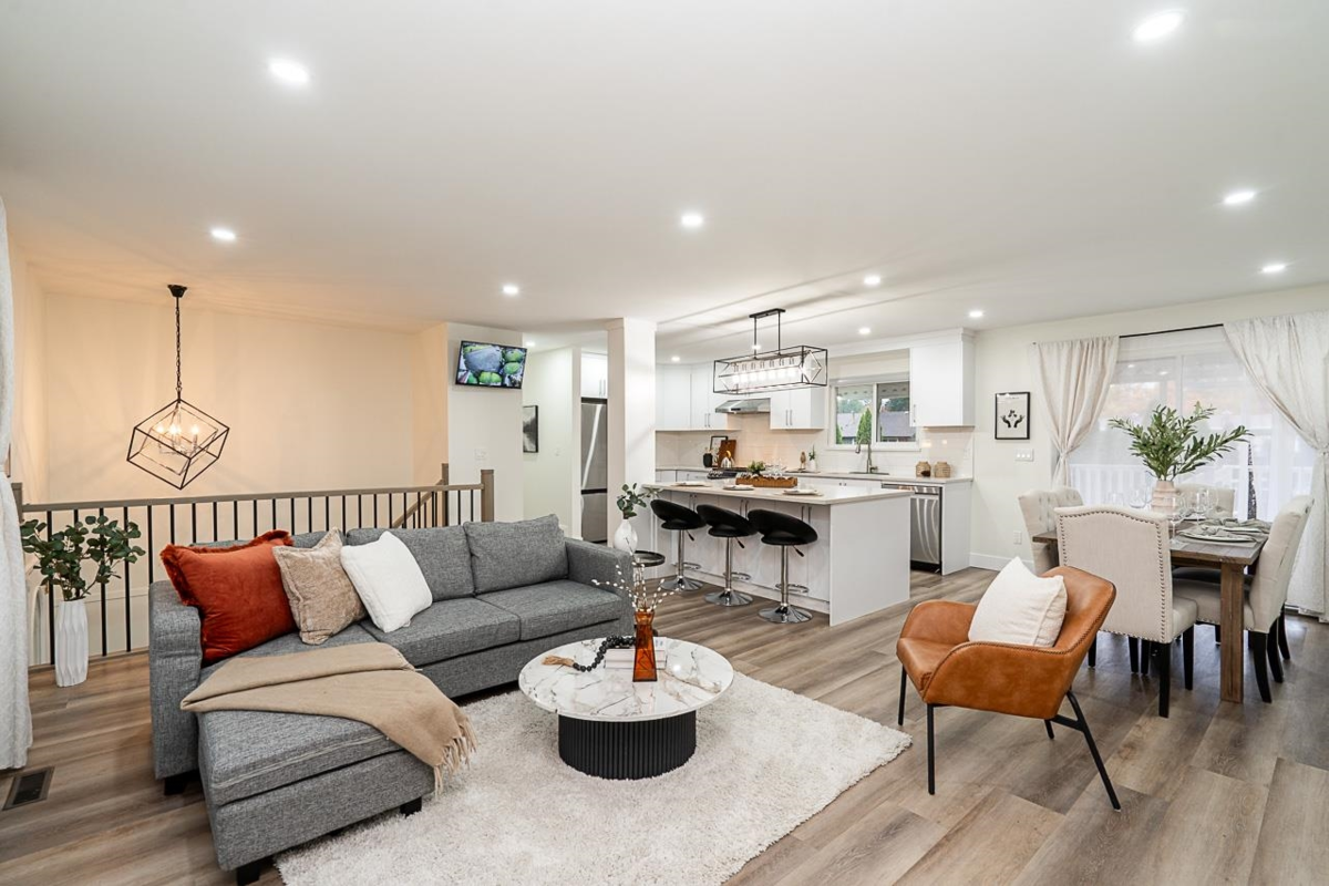 This beautifully updated 5-bedroom, 3-bathroom home sits on an expansive nearly 14,000 sq. ft. lot with an impressive 94 ft frontage. Both levels have been fully renovated, offering modern finishes and a fresh, contemporary feel. The upper level features a gourmet kitchen, an open-concept living area, and a massive deck—perfect for entertaining. The lower level offers a spacious 2-bedroom suite with a large rec room, providing excellent flexibility for extended family or rental income. Enjoy the huge backyard, new fencing, and two garages, making this property a fantastic investment or family home. Don’t miss out—book your private showing today!